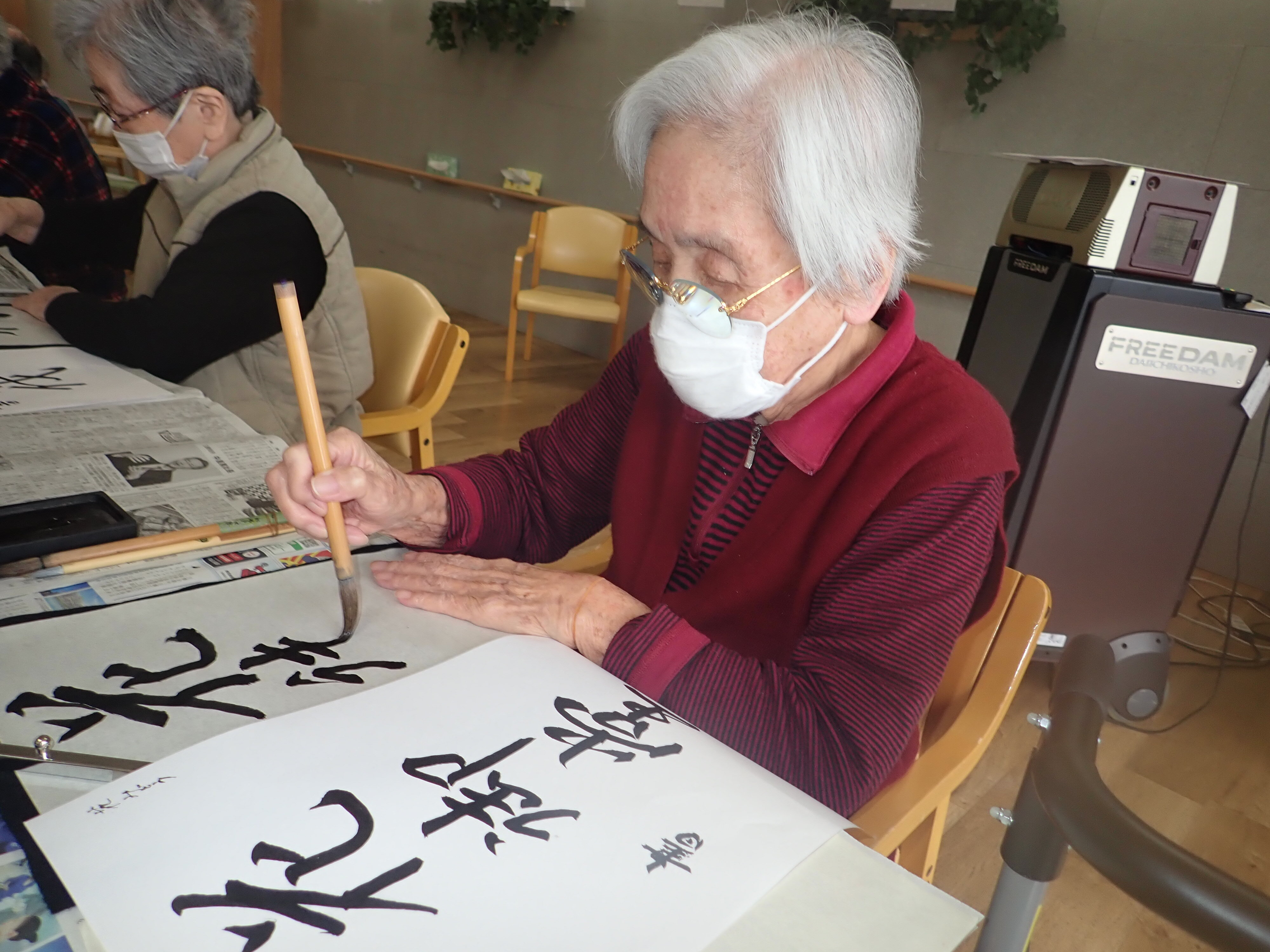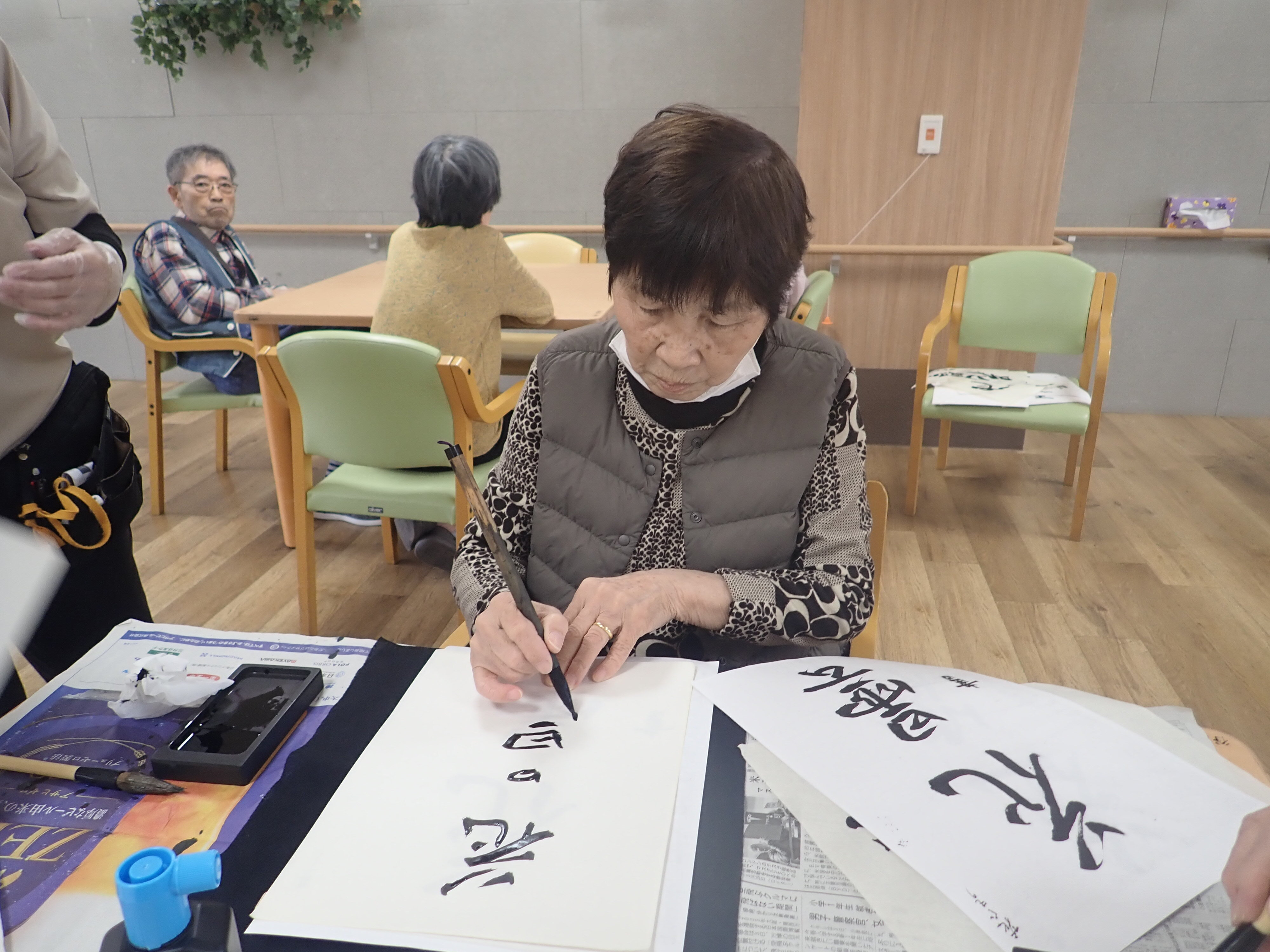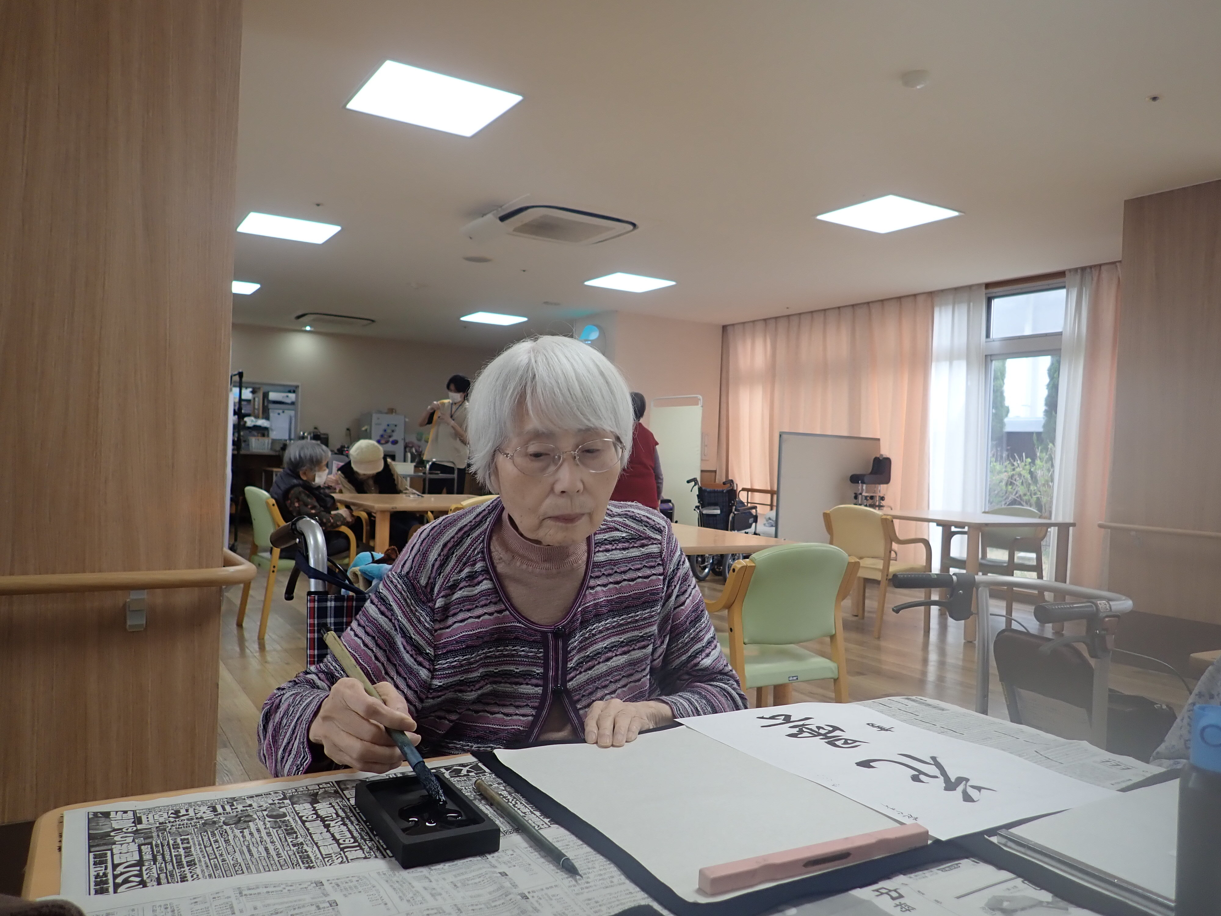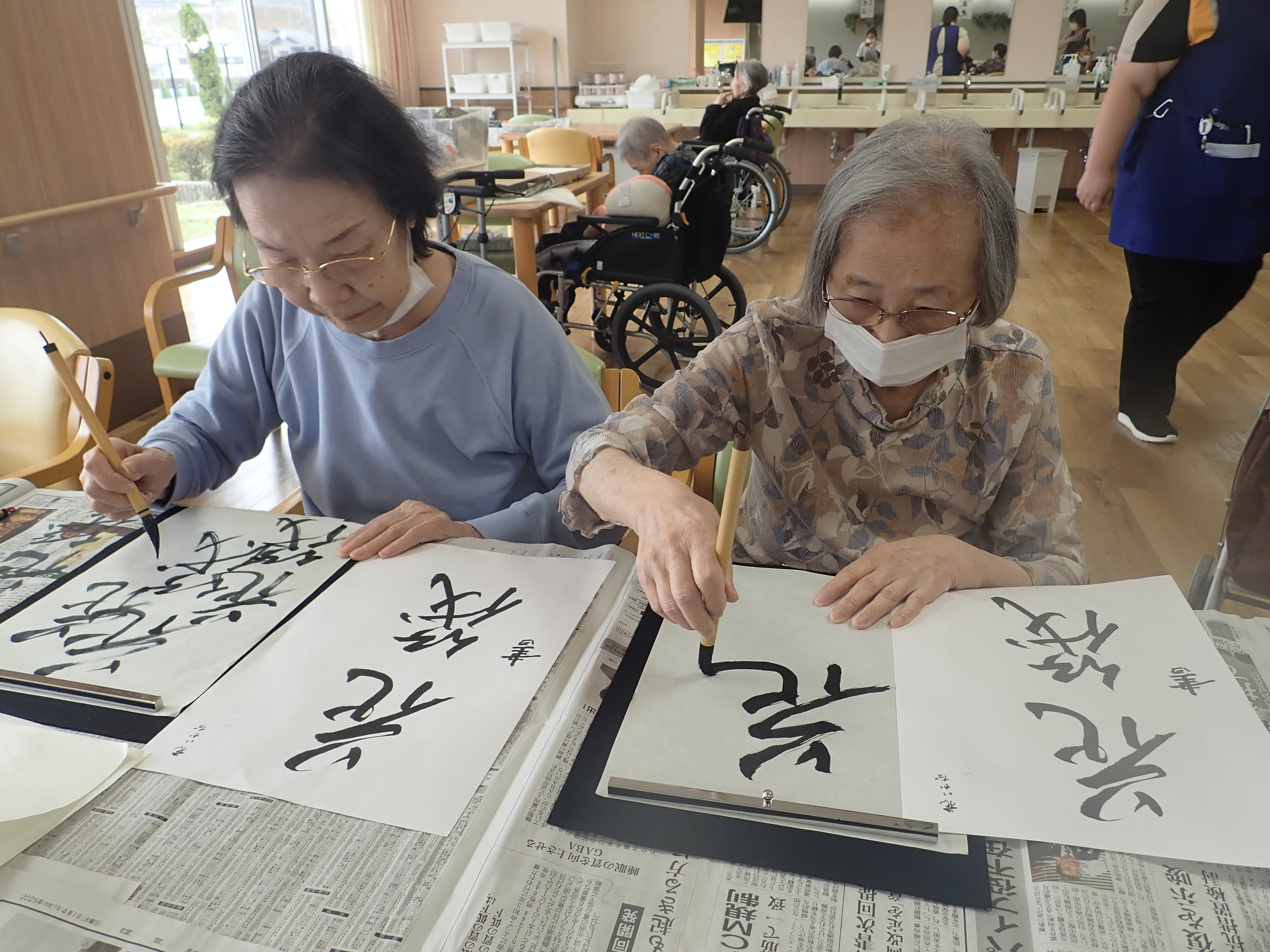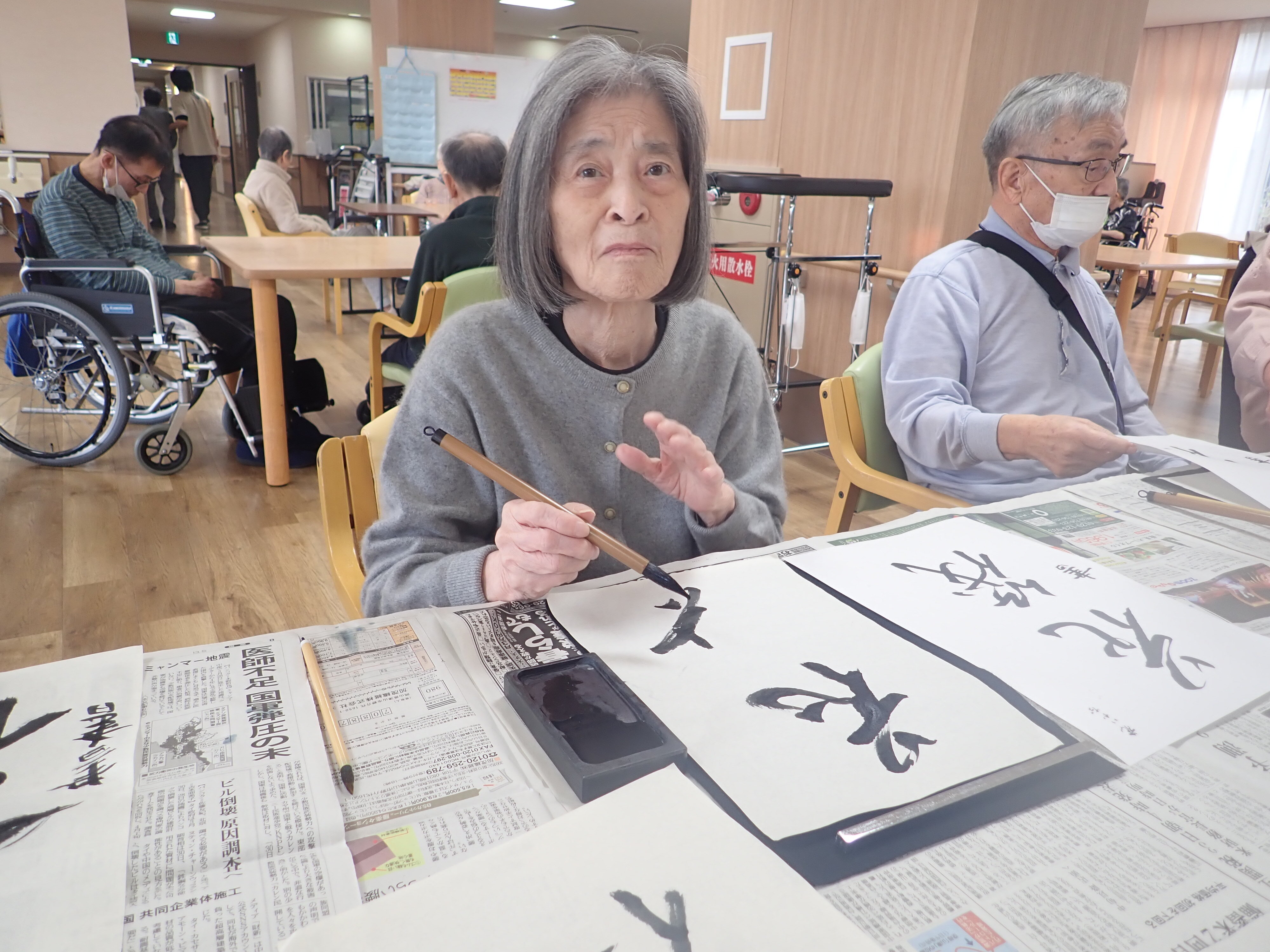 以前書道レクリエーションで皆様に書いて頂いた作品です!