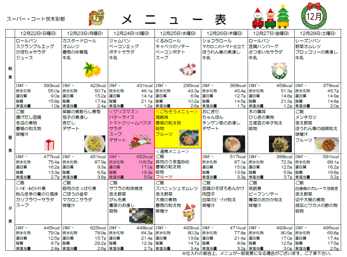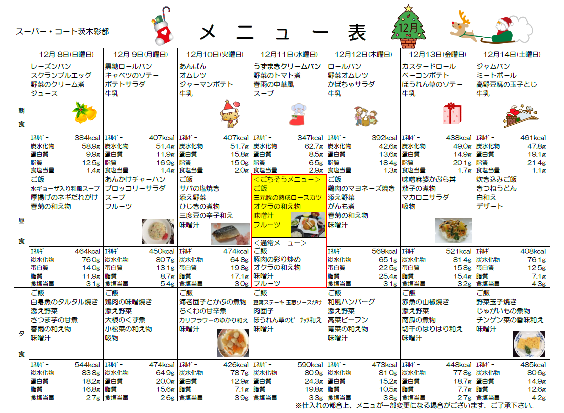 今月もごちそうメニューに加え季節にちなんだイベントメニューもご用意しています。