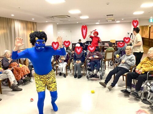 最初は少し遠慮がちだった方も、周りの熱気に誘われて、いつの間にか身を乗り出すほどの勢いに。 鬼に扮したスタッフも皆さまの力強いパワーに圧倒されましたが、会場全体がワイワイと大きな笑い声に包まれ、最高に賑やかなひとときとなりました。