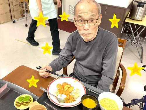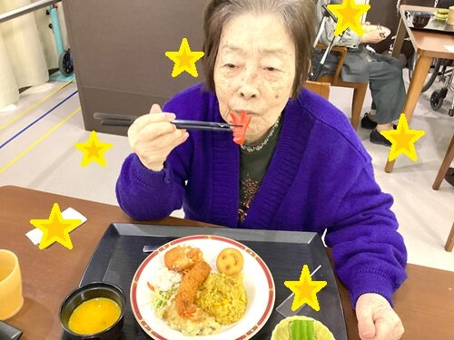 今回のプレートは、海老フライナポリタン、そして食欲をそそる香りのカレーチャーハンなど、皆さまに人気のメニューが勢揃いでした! 色とりどりの盛り付けを前に、皆さまじっくりお皿を眺めてから、嬉しそうに箸を運んでいらっしゃいました!