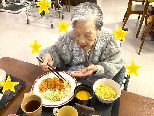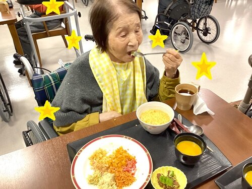 お膳が運ばれると、「わあ、豪華ね!」「何から食べようかしら」と、皆さまの表情がパッと明るくなりました。