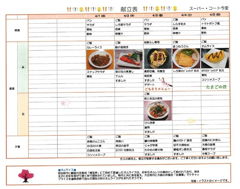 4/1からのお食事メニュー表♪です