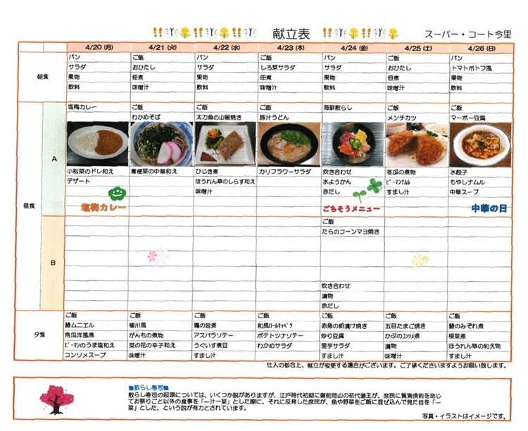 4/20からの食事メニューです♪