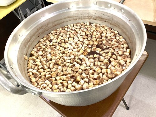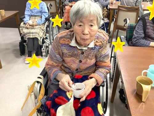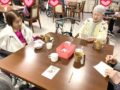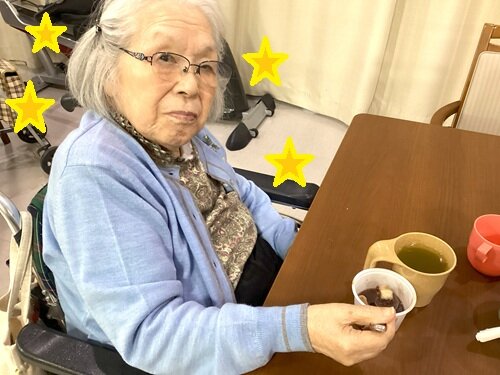 と、お茶を片手にほっこりとしたひとときを過ごされました。 お餅のような食感を楽しみつつ、喉越しも良いお麩のぜんざいは、皆さまに大好評! おかわりを希望される方もいらっしゃるほど、賑やかなおやつタイムとなりました。