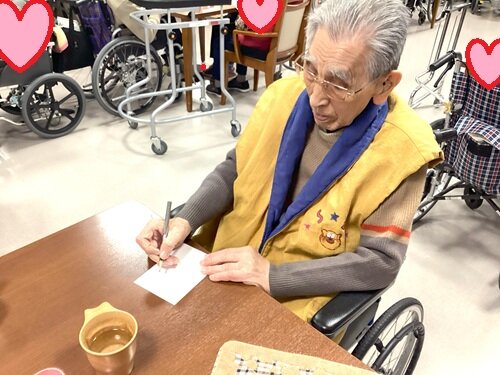おせちぜんざいで新年のお祝いをした後は、皆様と一緒に「年賀状作り」を楽しみました!