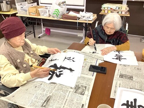 ご来設の際は、ぜひ運動スペースまで足を運んでいただき、皆様の個性豊かな「書」をご覧になってください!