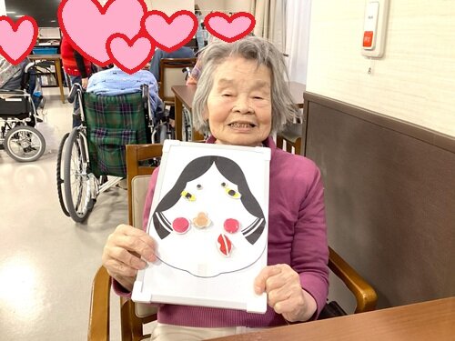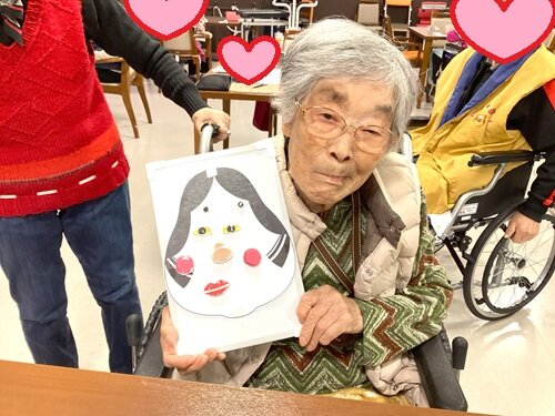 三が日の締めくくりとして、三日の午後は新春レクリエーション「福笑い」を開催しました!