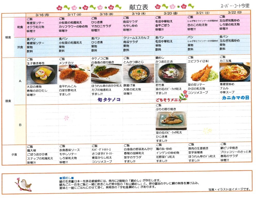3月16日からの献立メニュー♪