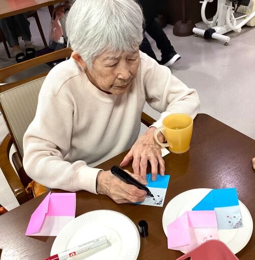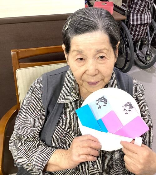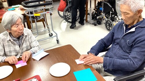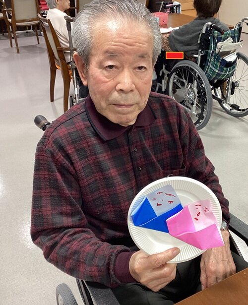 職員の説明やお手本を見ながら、皆さまで折り紙を 折り折りして~・・・