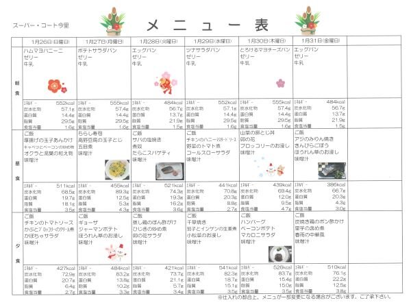 1月26日からの献立メニューです♬