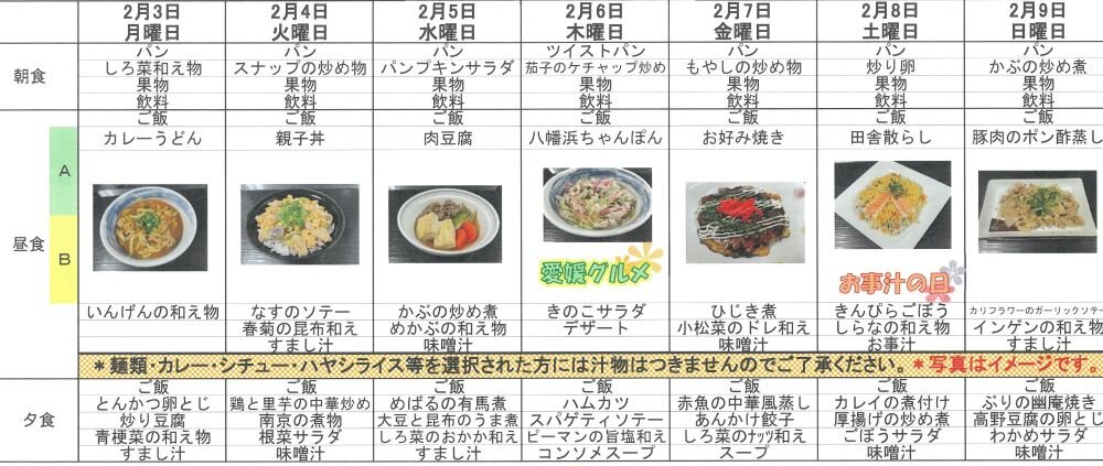 2月3日からの献立表!です♬