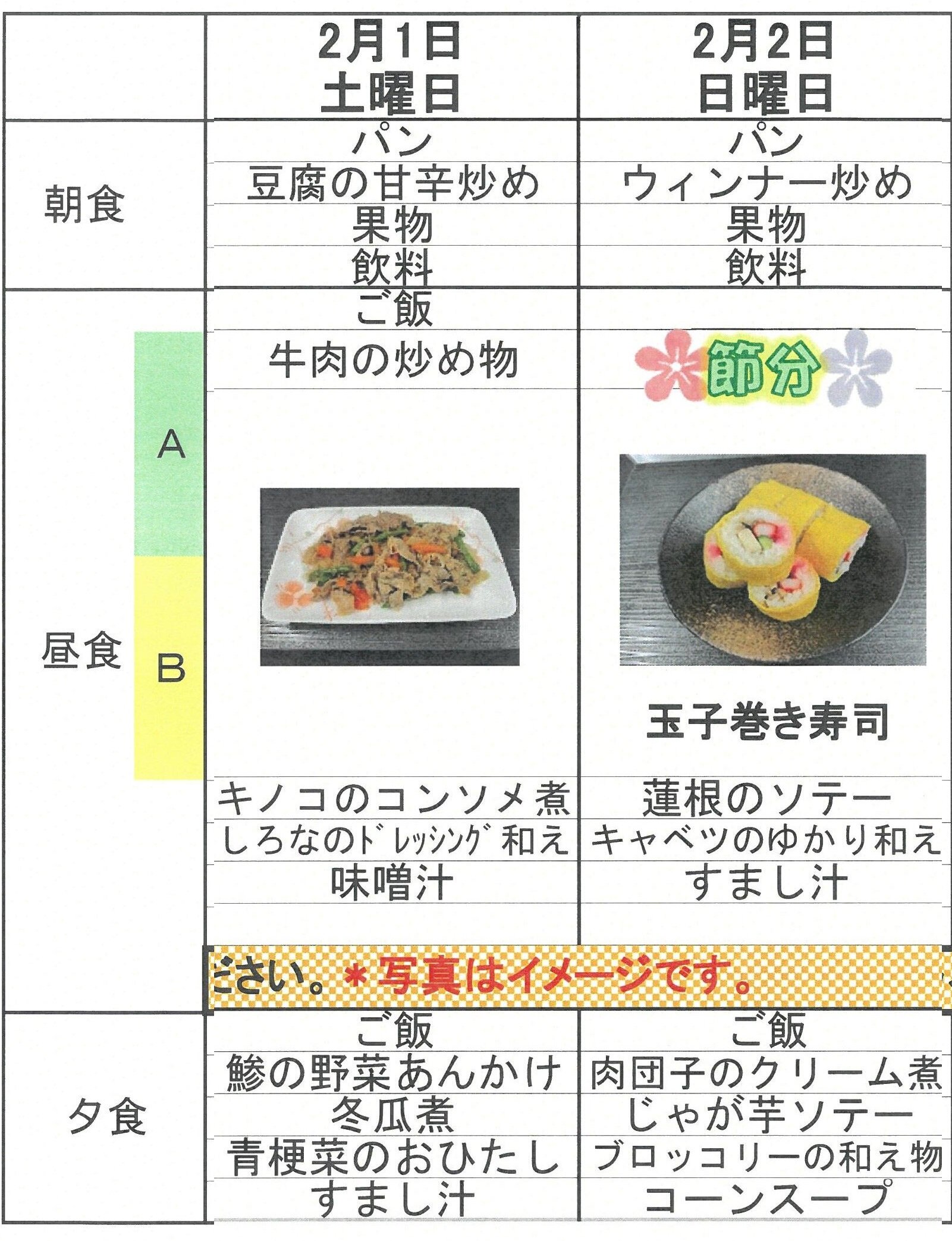 2月1日2日の献立表です!今から楽しみ!