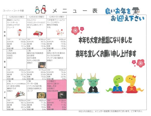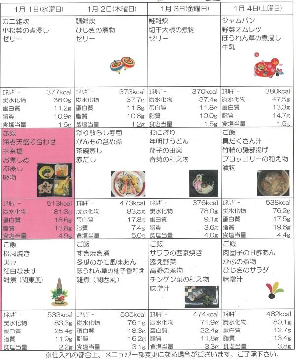 元旦のメニューを見て、おそばを食べながらよだれが出てしまいそうです♬
