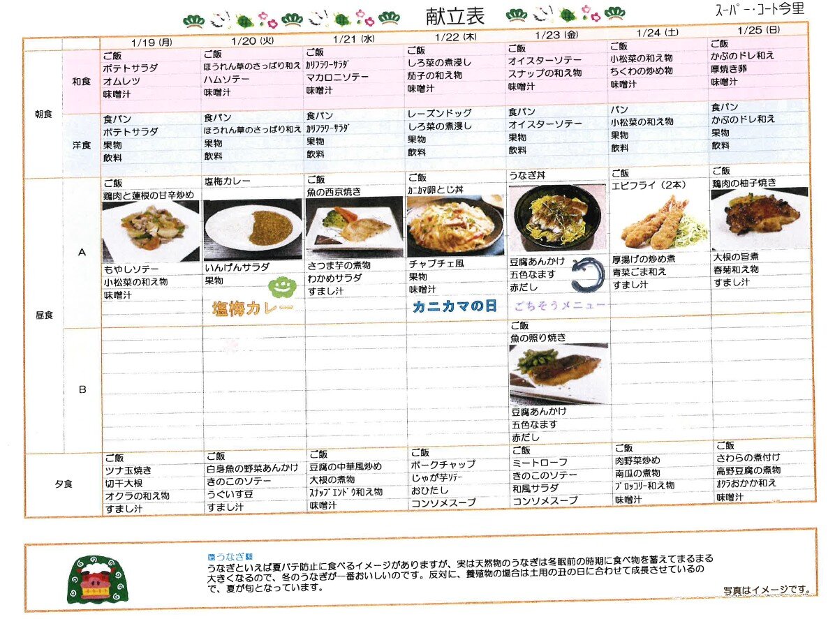 1月19日からの食事メニューです♫
