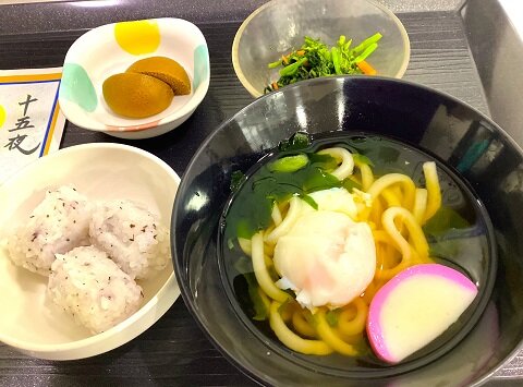 「お月見うどんってことは、今日はお月見なんやなぁ。見れるかな?」