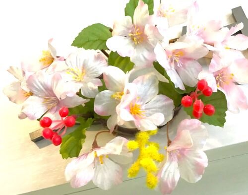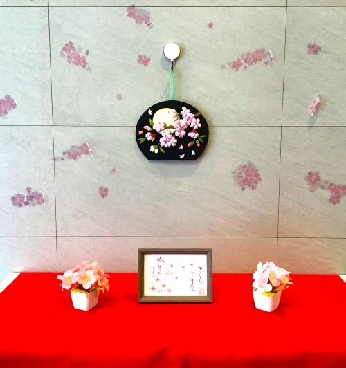 ご来館の際は、可愛い桜の花がお出迎えします ♪