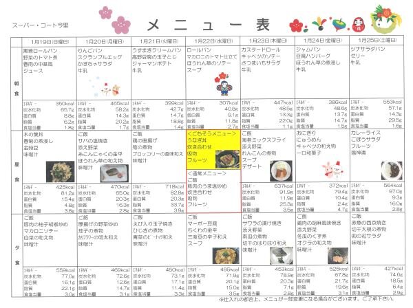 1月19日からの献立メニューです♬
