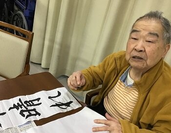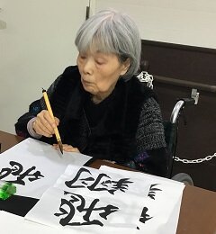 出来上がった書初めは、乾いた後で施設内に張り出しています!