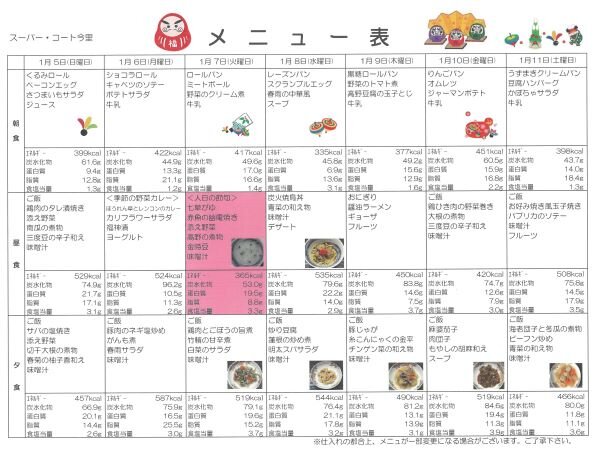 1月5日からの献立メニューで♬