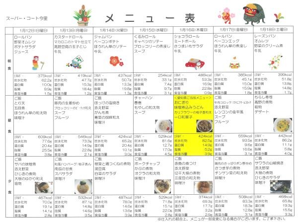 1月12日からの献立メニューです♬