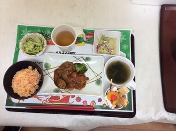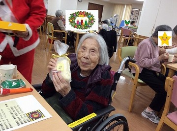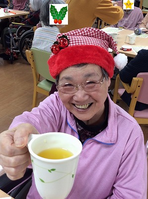 14時から食堂でクリスマス会を行いました(*^^)v。午前中に、ご入居者様の主婦の先輩方達と一緒に