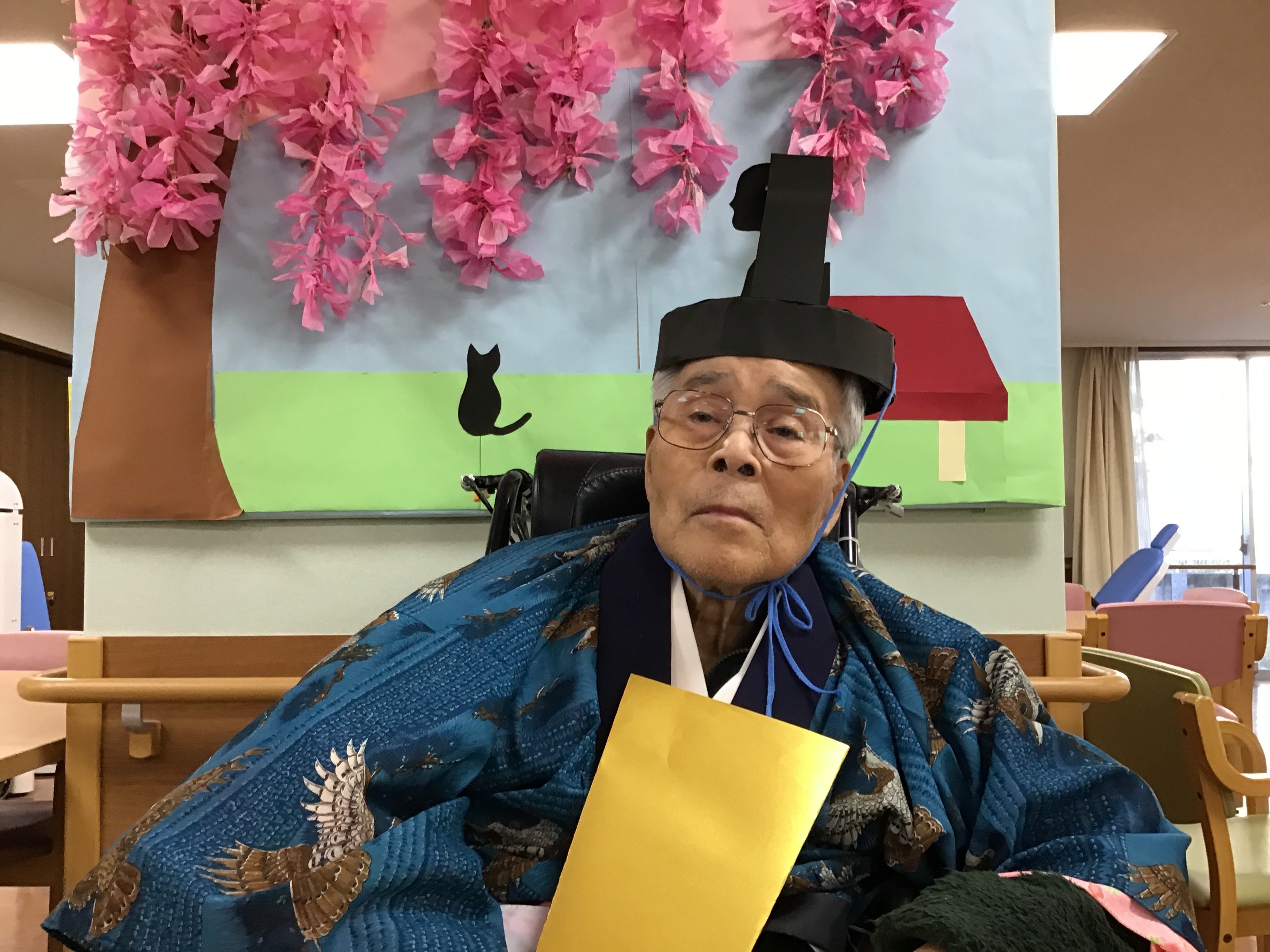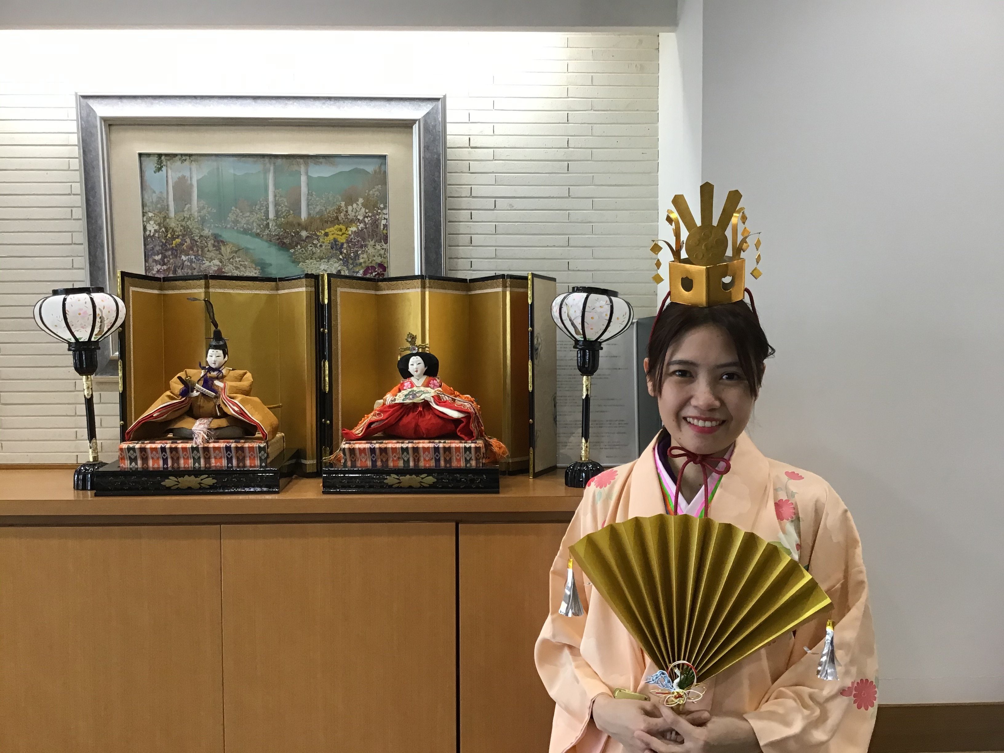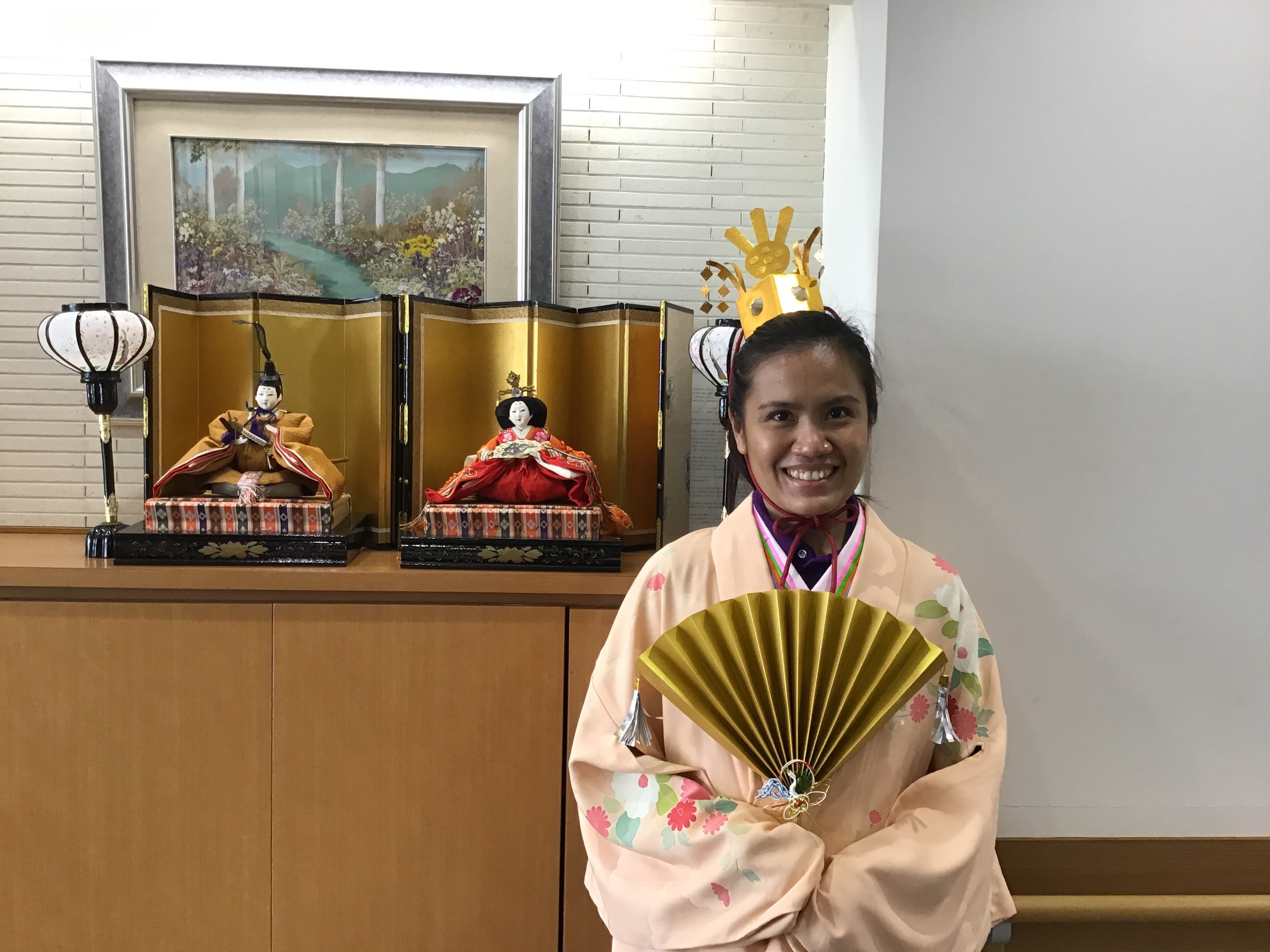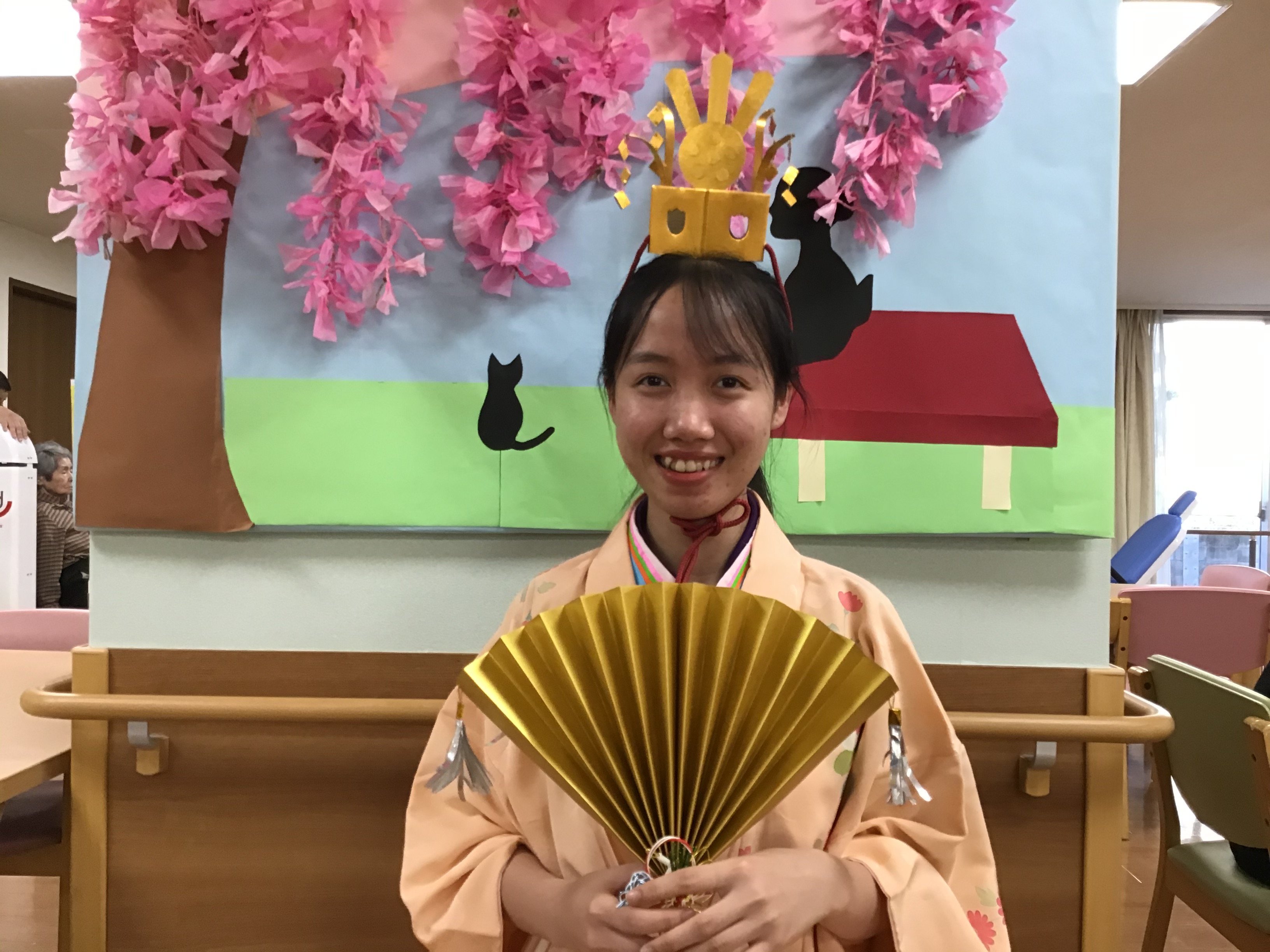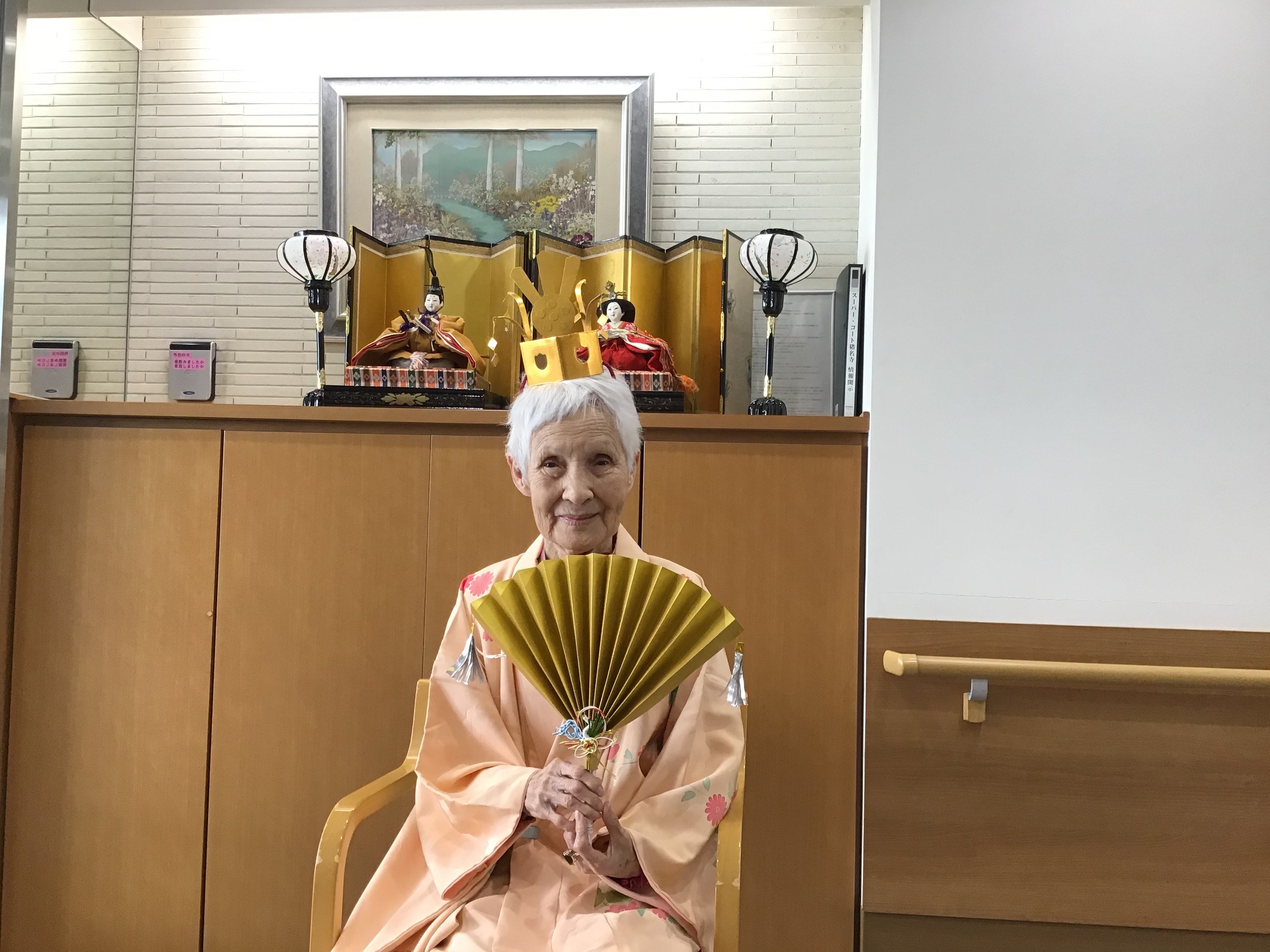 ご入居者にお内裏様とお雛様になって頂くのは、とても良い案ですね。そして皆さまとてもよくお似合いです。