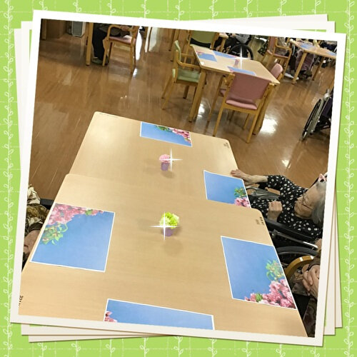 各テーブルにもお花を飾り、ランチョンマットで華やかに★