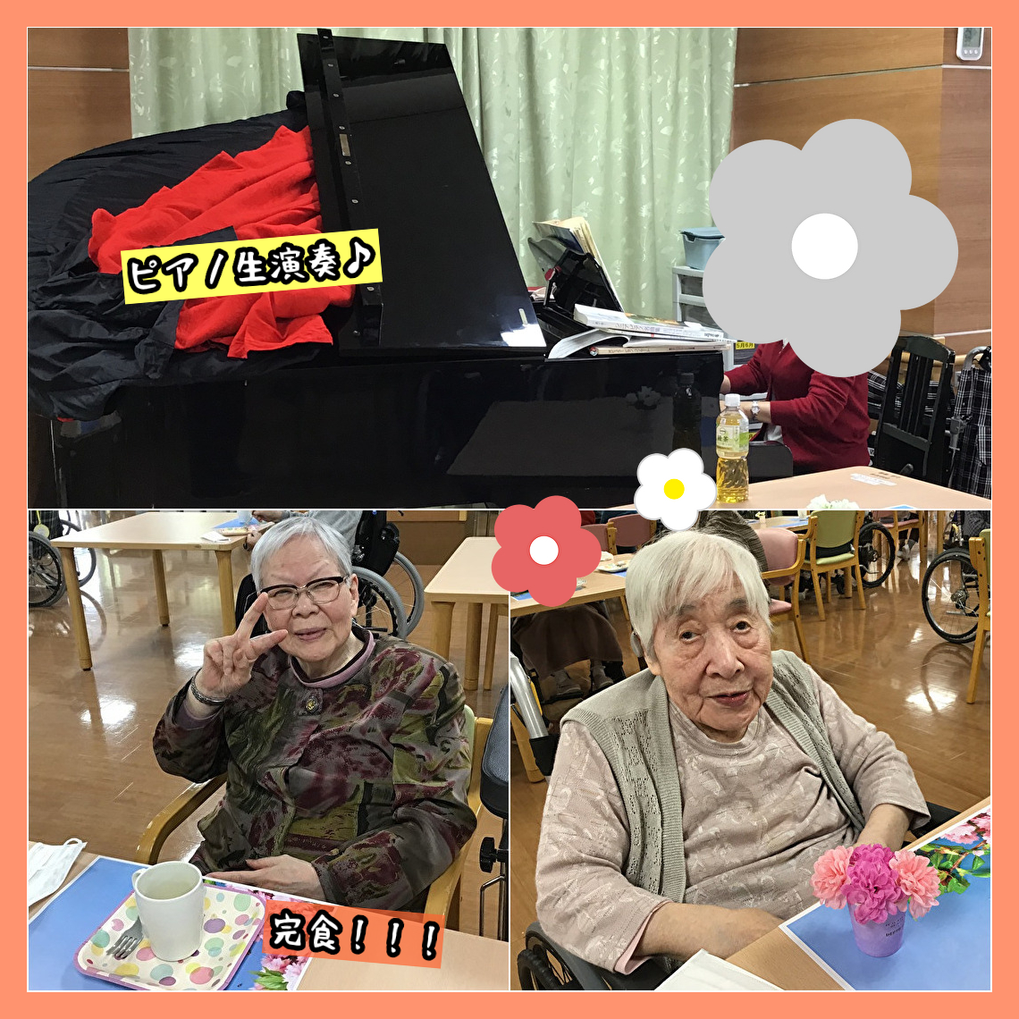 また、職員によるピアノの生演奏を聴いていただきながら