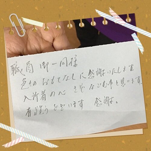 職員を気遣ったお言葉をいただきました(*´ω`*)