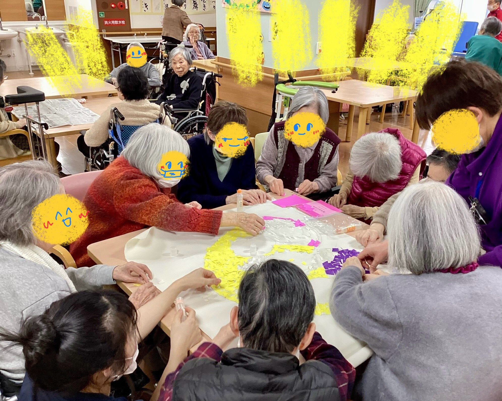 食堂では何やら、みなさんでちぎり絵をされていました!!