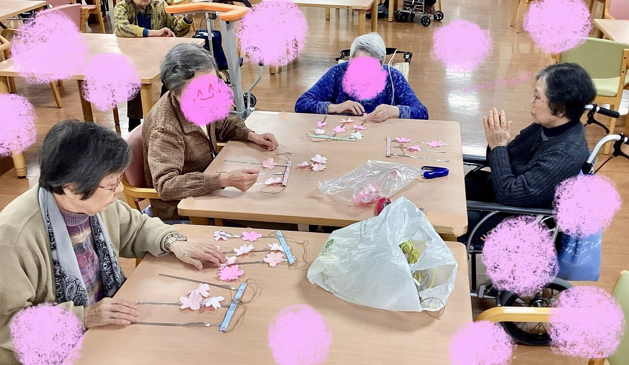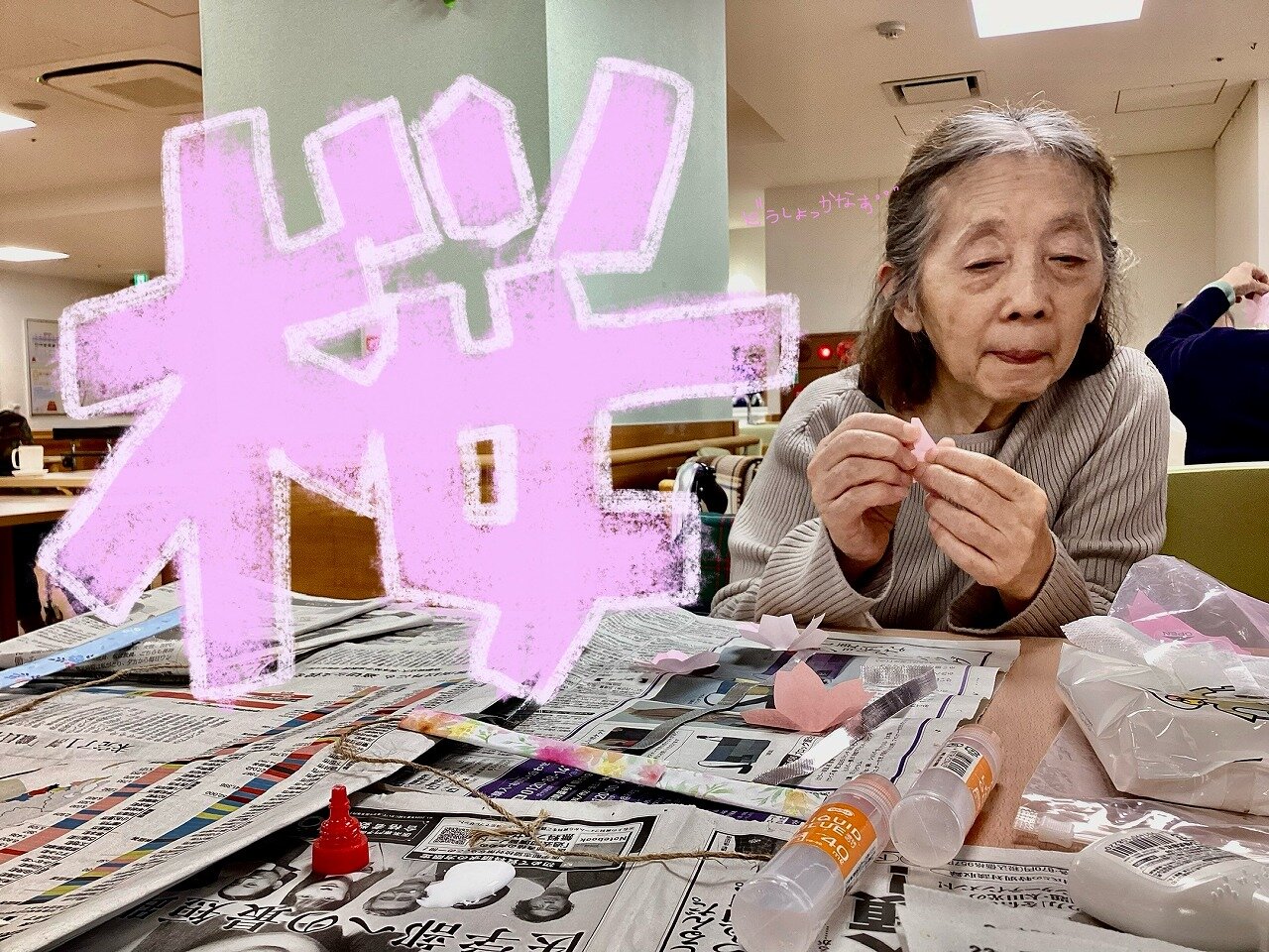 春に向けて桜のモービルを、みなさまと作成しました!!