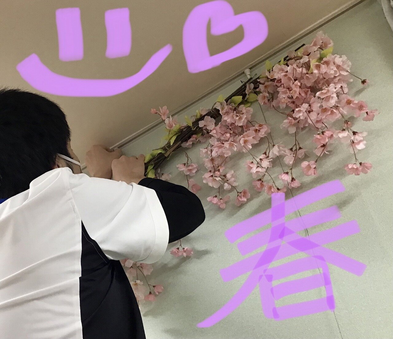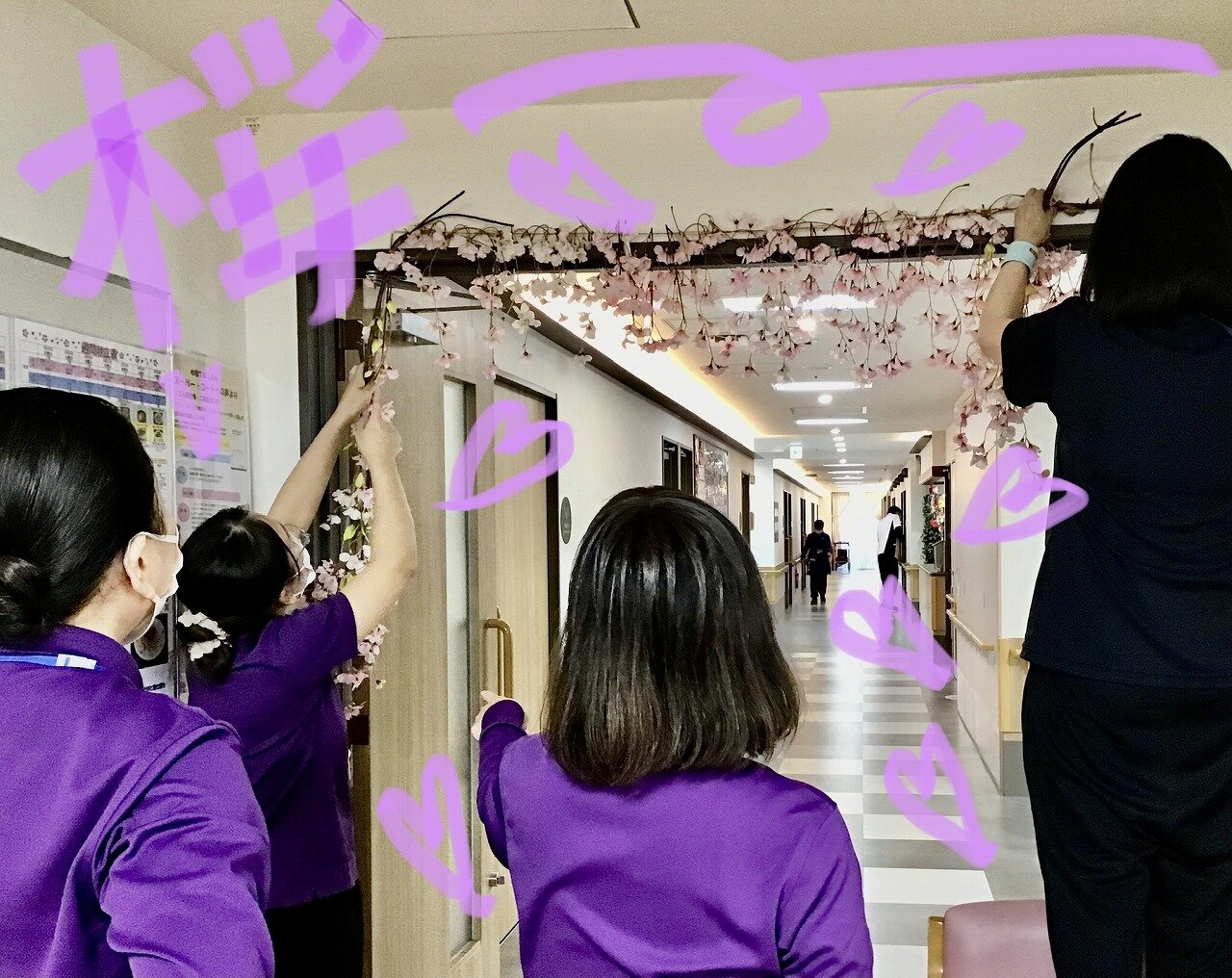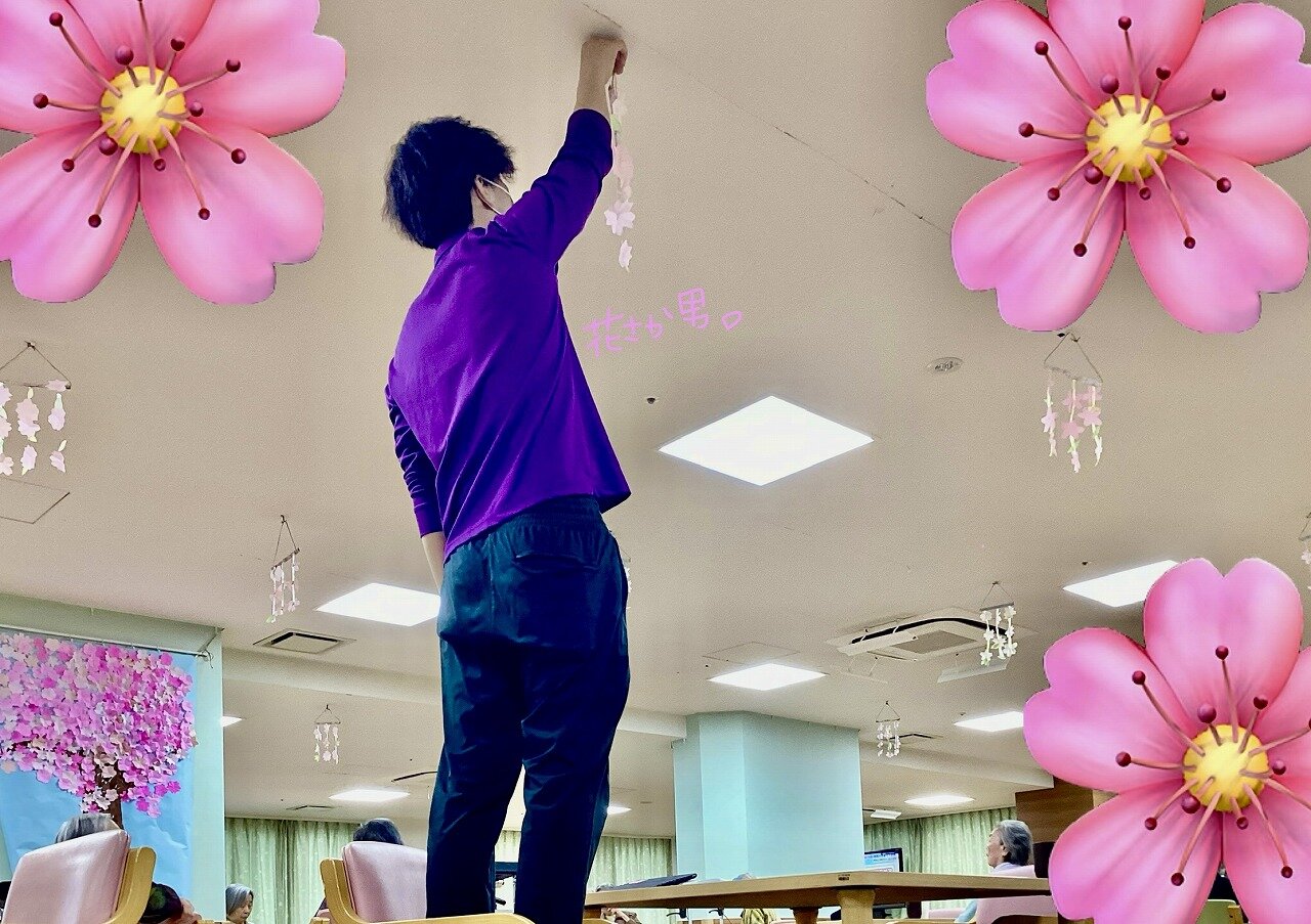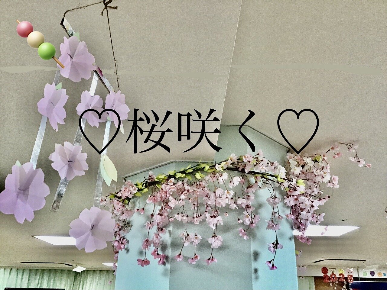 先日、みなさまと作成した桜のモービルもしっかり飾りつけ出来ました!!