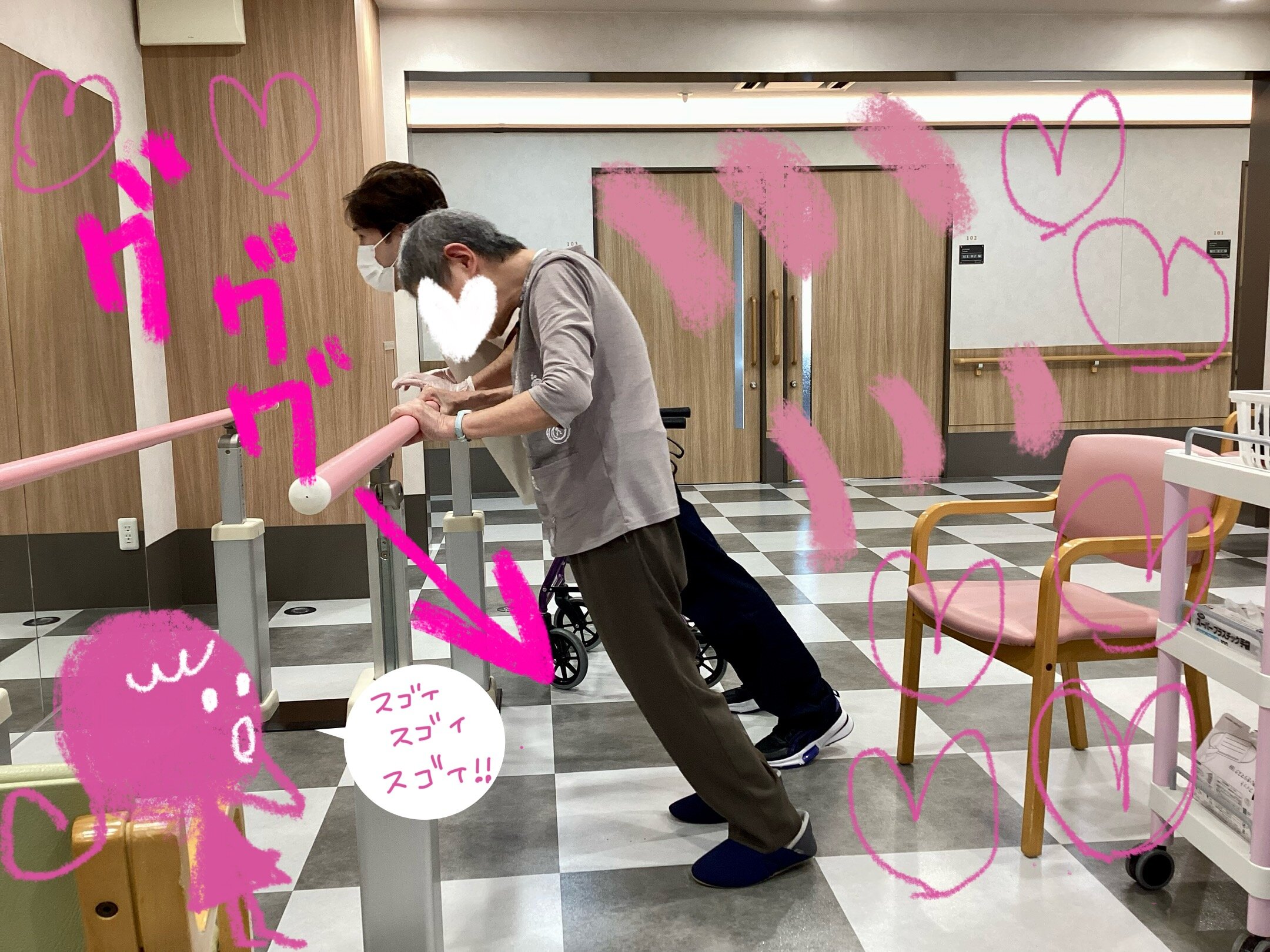 介護・介護も連携して日々のリハビリを行っております( *´艸`)