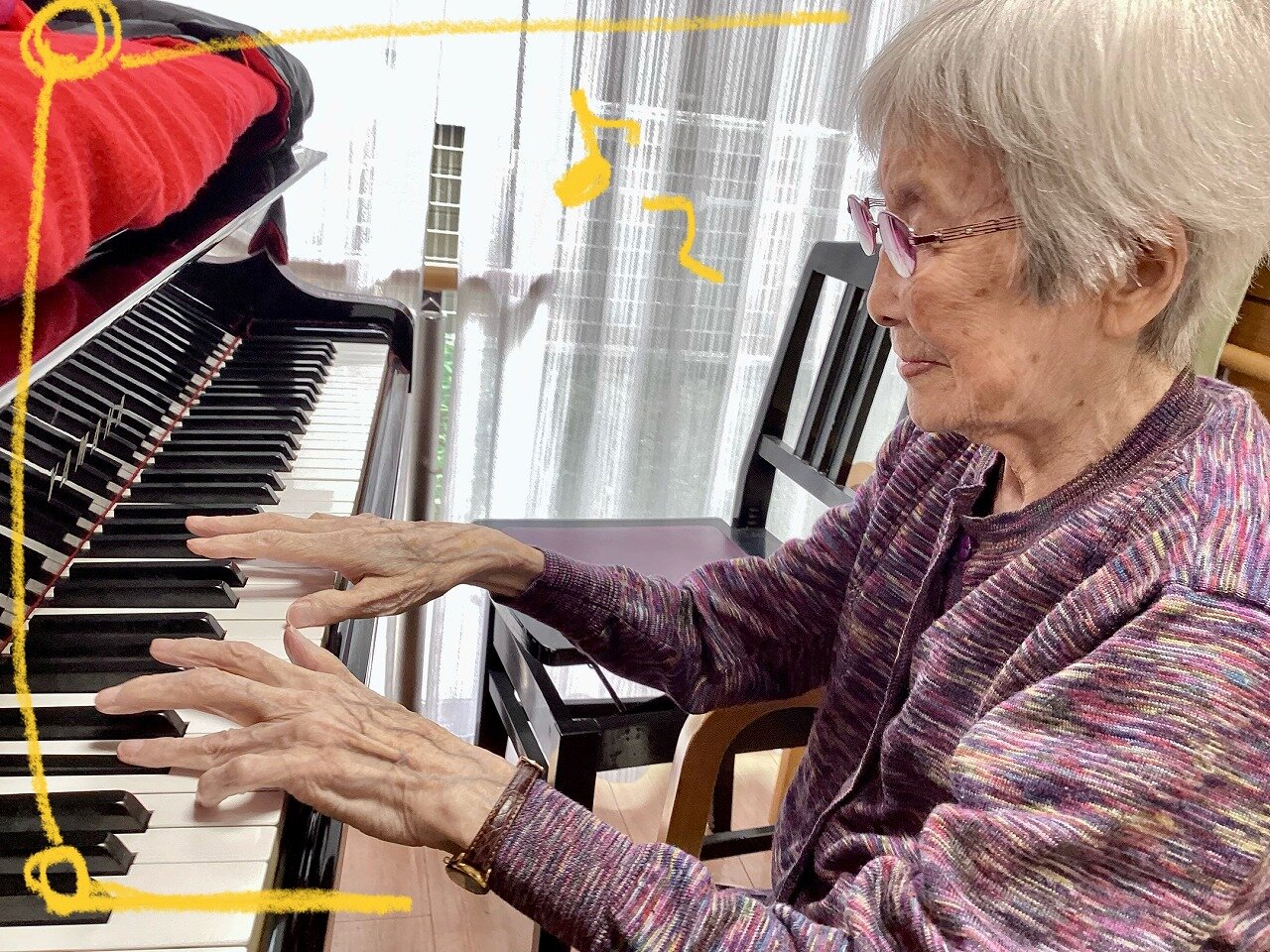ピアノ演奏とお食事前の体操を頑張っている様子です!!