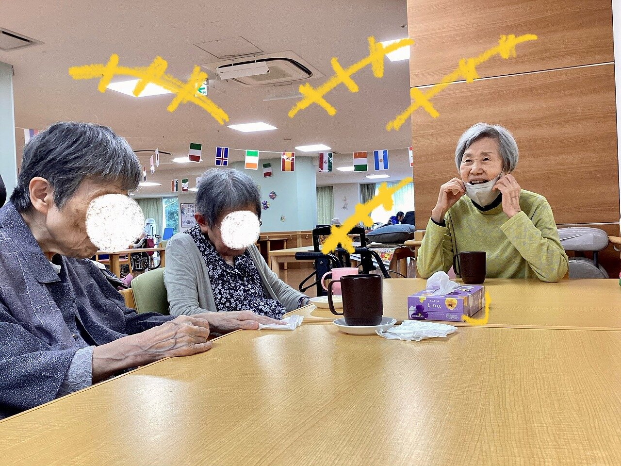 お外の空気を吸いに玄関先に出ている所と、ティータイムの談笑中の様子です!!