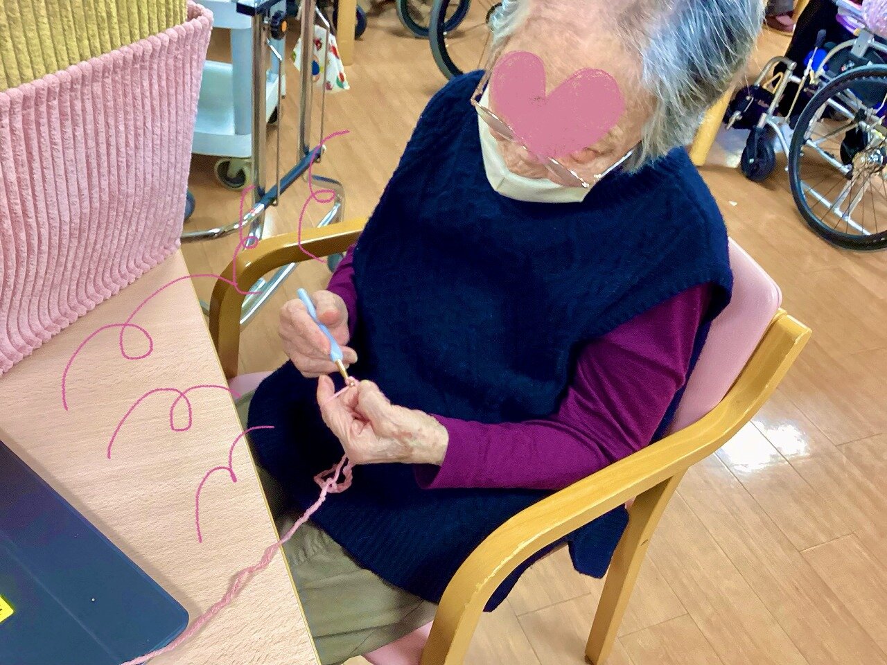 みんなとワイワイ話しながら楽しく編み物が出来る事です( *´艸`)