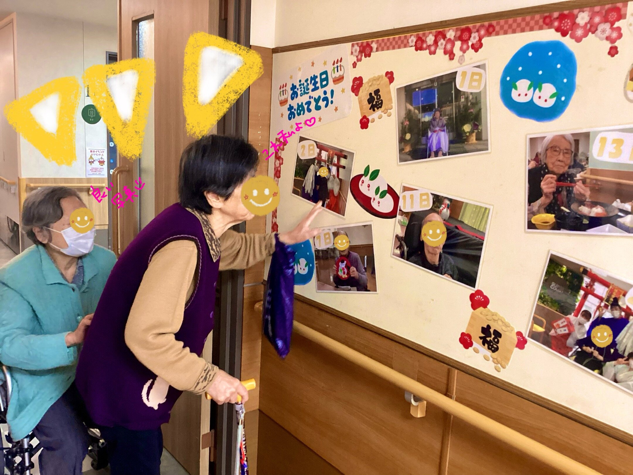 1階食堂入口に設置されているお誕生日ボード(*^^)v