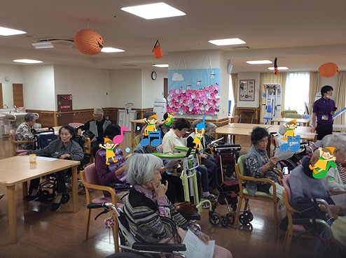 入居者様は皆さん演奏と一緒に口ずさんでおられました。