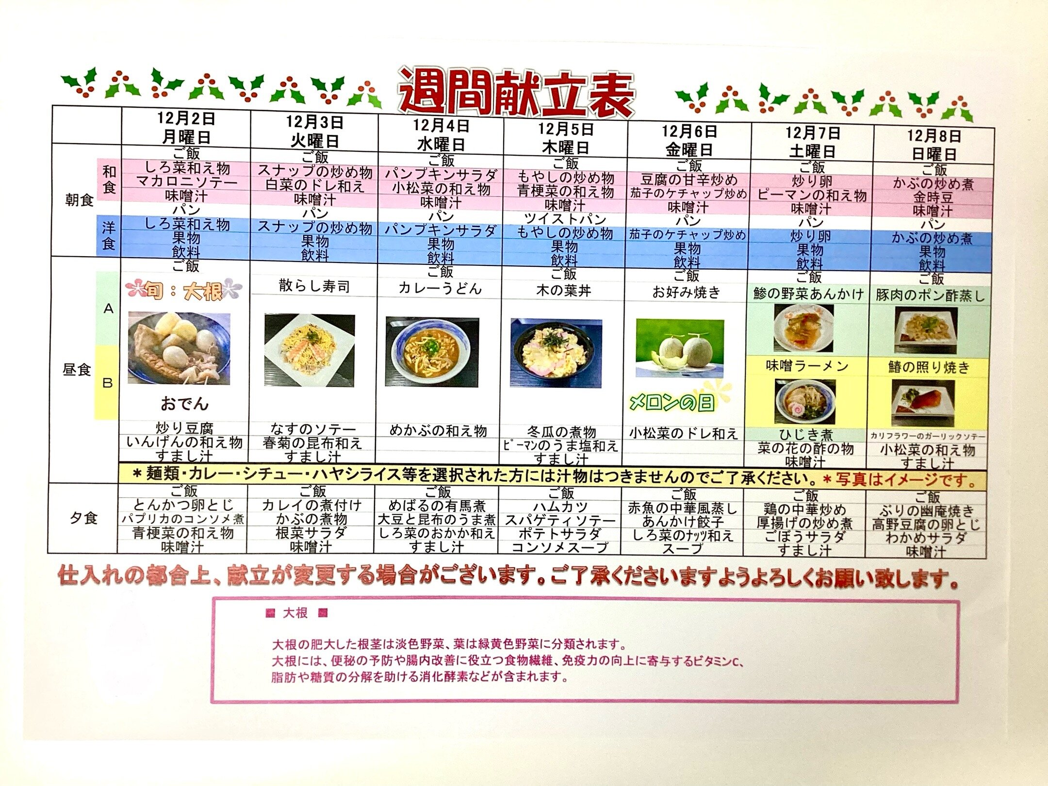 2月24日から3月2日までの献立をご紹介します。