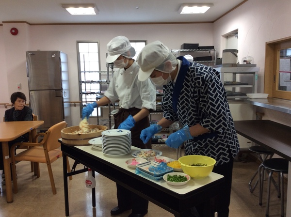 皆さまの目の前で提供ということで、今回はちらし寿司を厨房の方が振舞って下さりました!