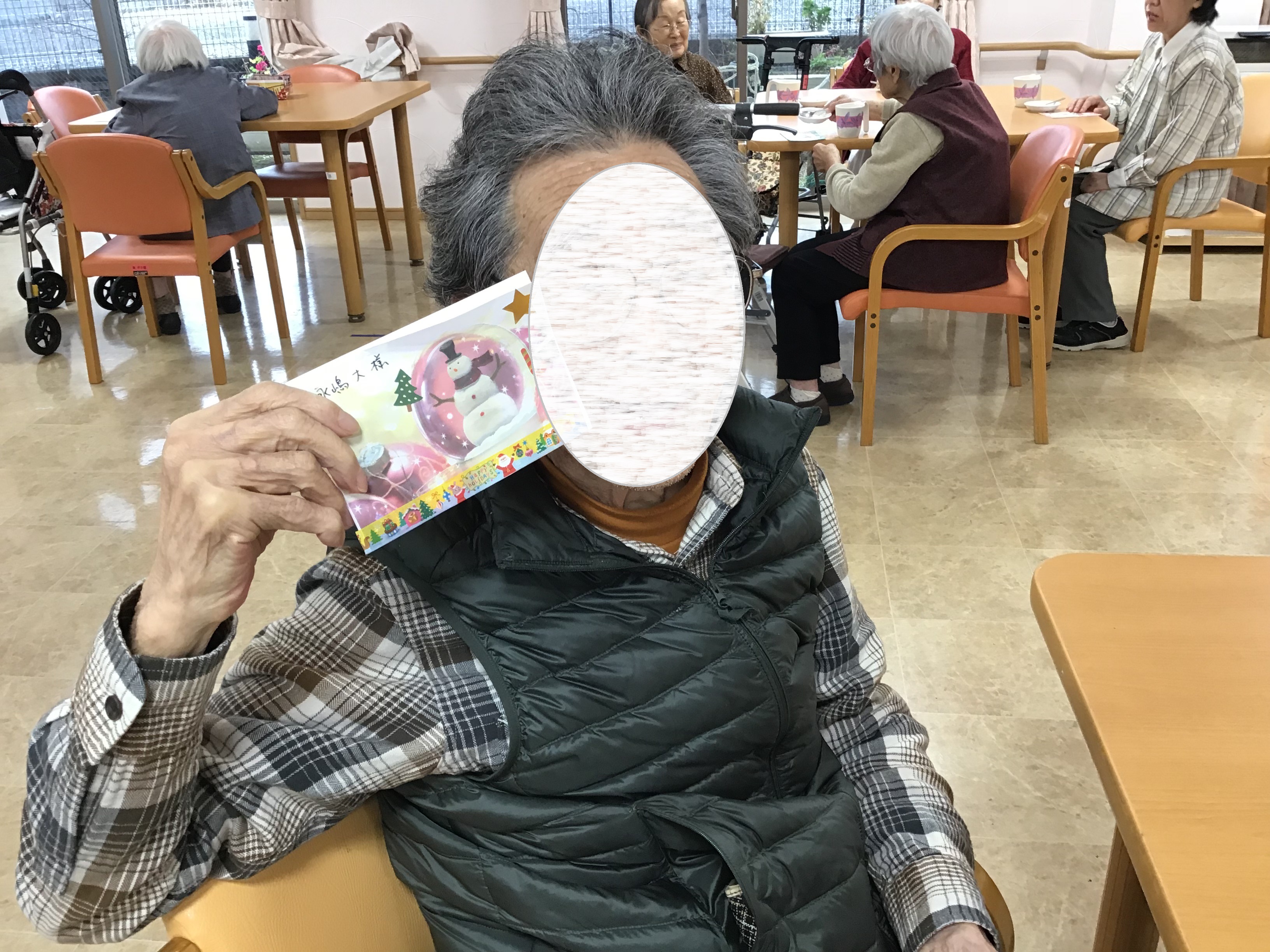 まず最初は職員からメッセージ入りの手作りクリスマスカードをプレゼントさせていただきました!