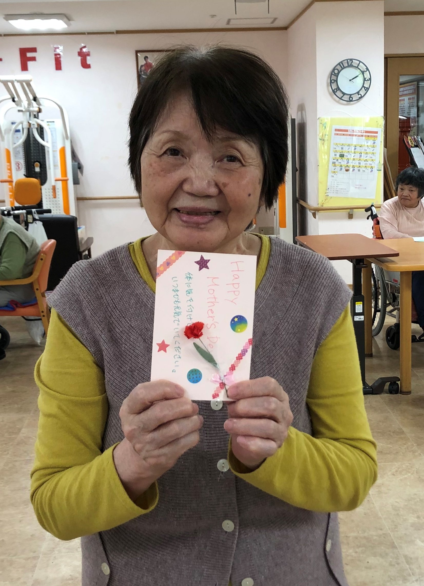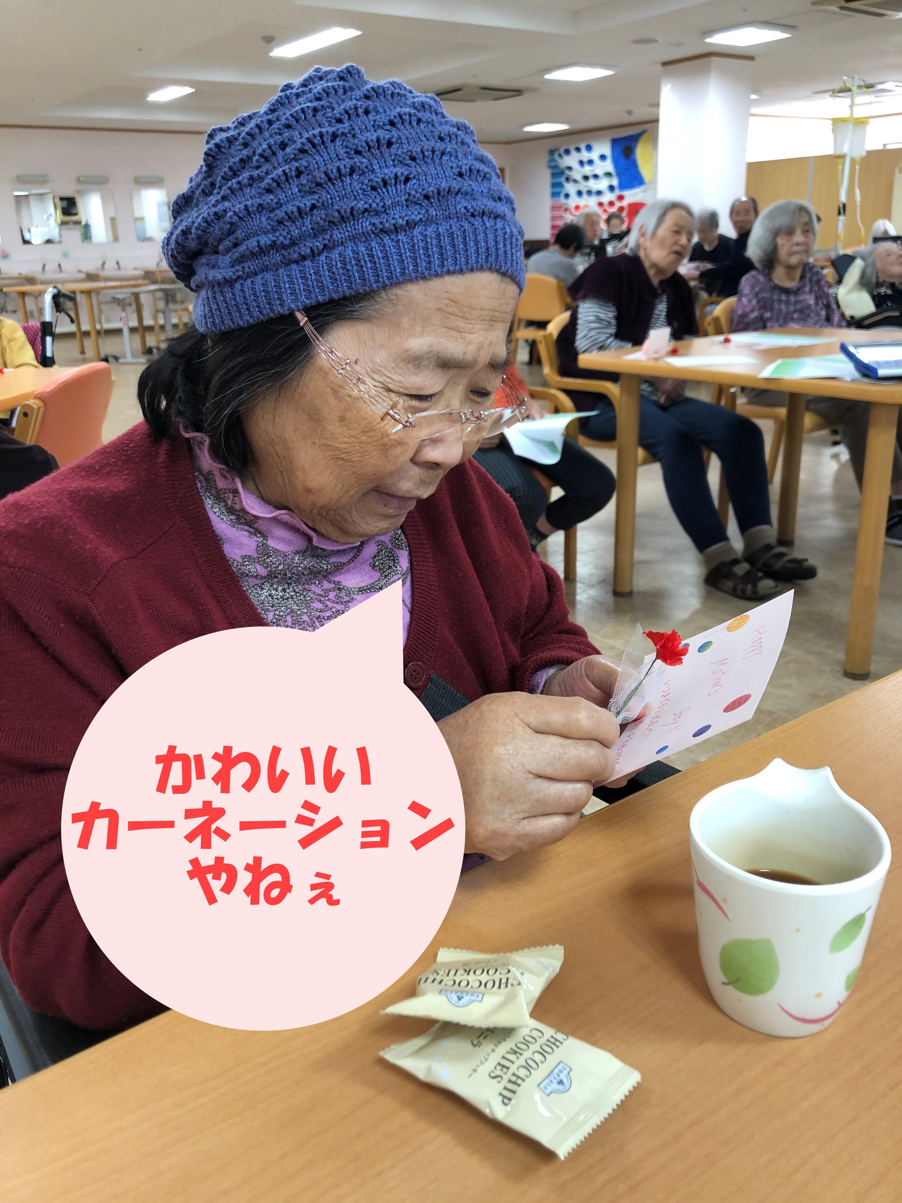 職員手作りのメッセージカードと小さなカーネーション♪