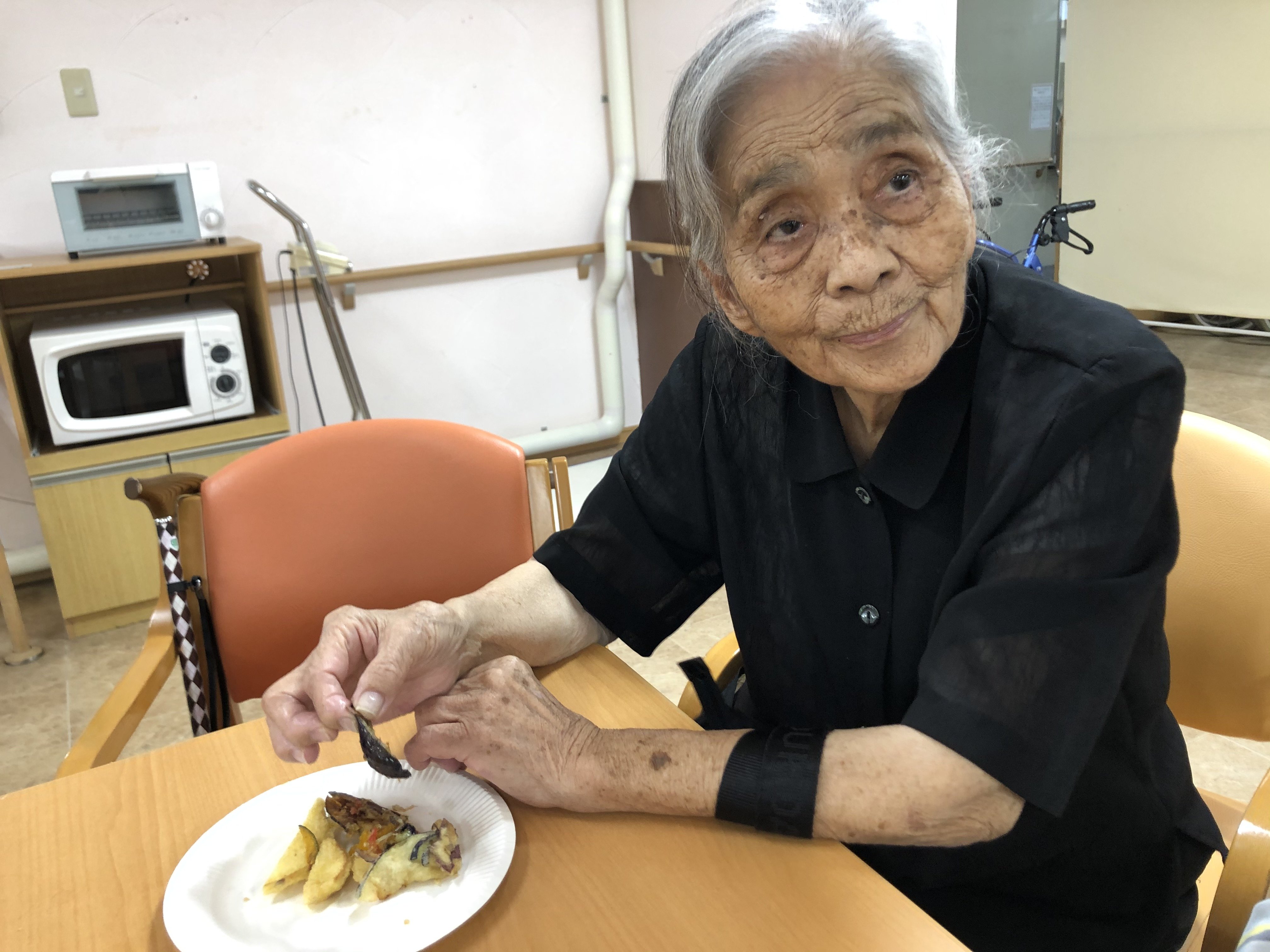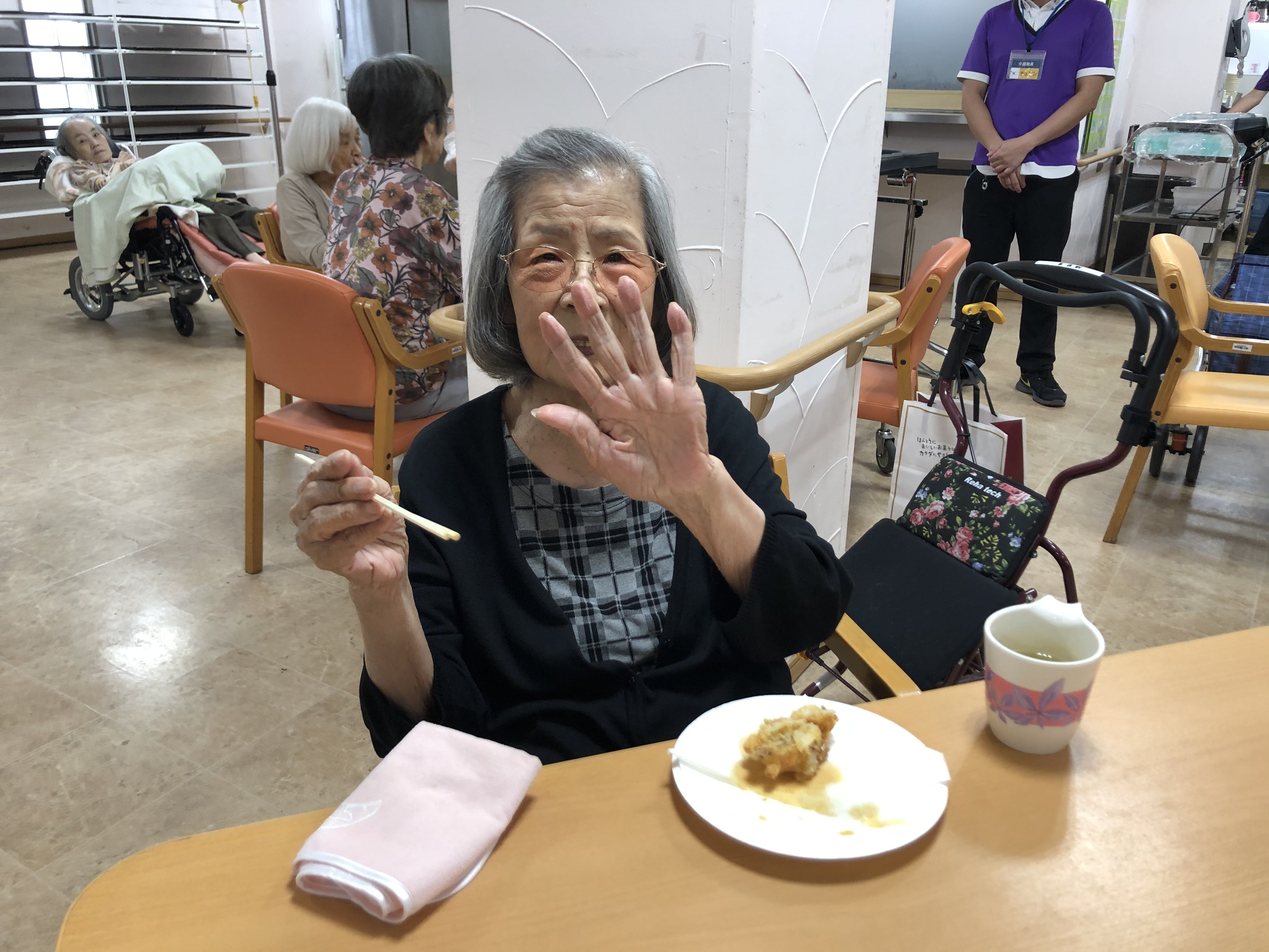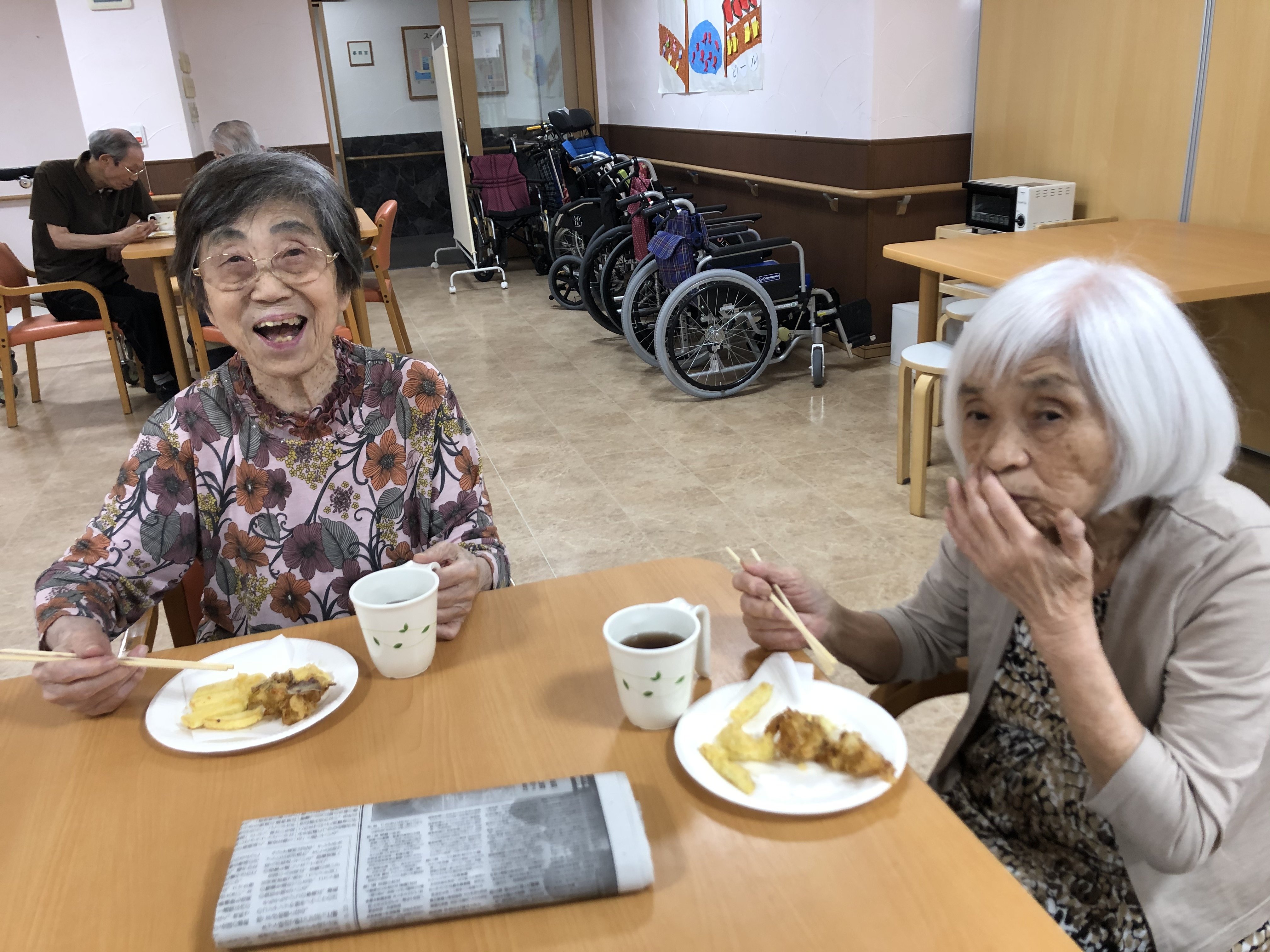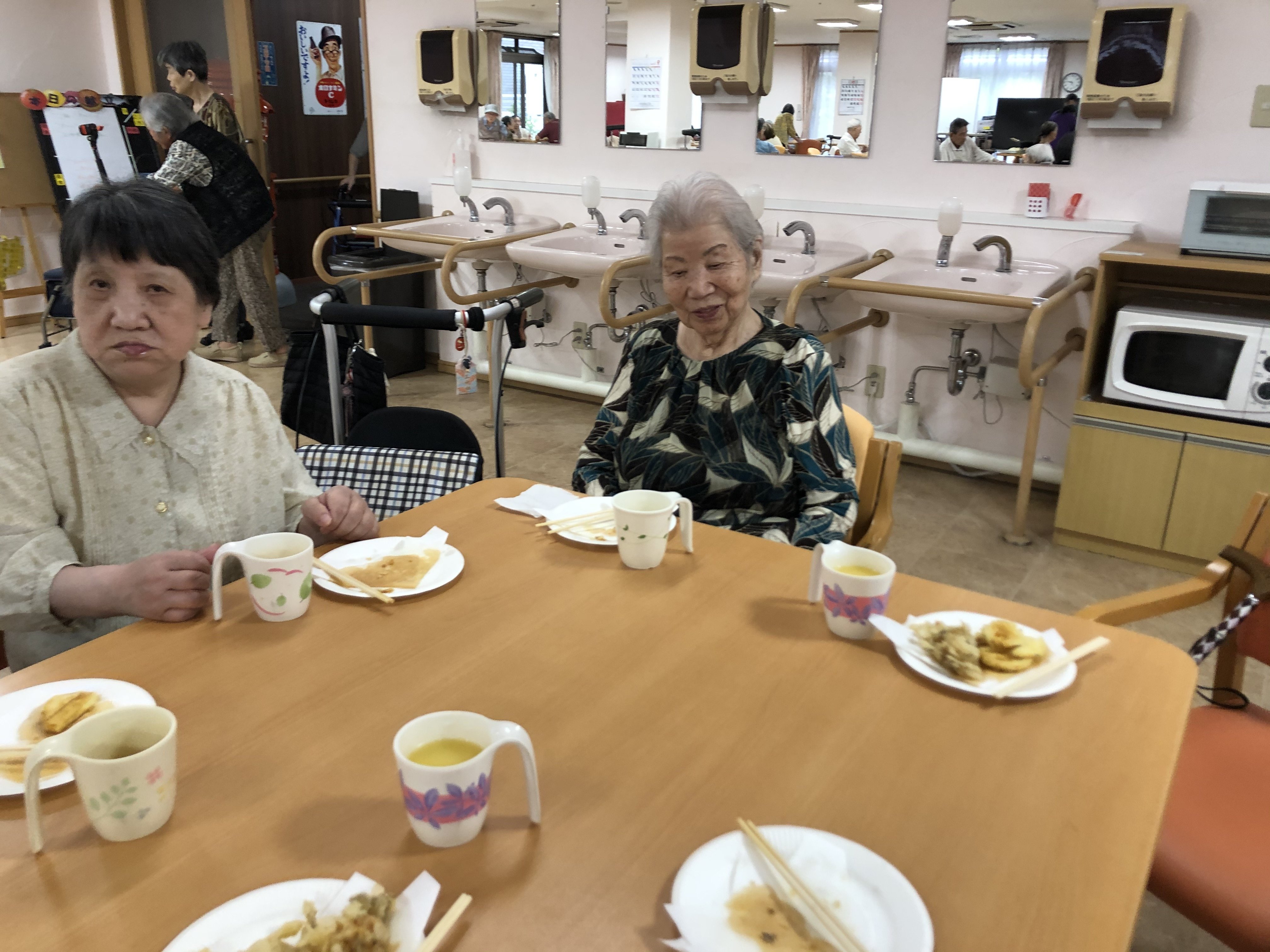 甘いおやつのレクは良く行いますが初めての天麩羅に皆様大喜びでした!