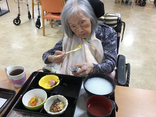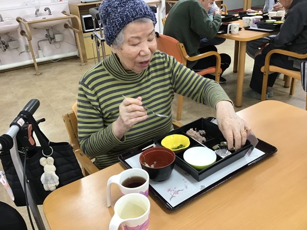 いつもはほとんど介助で召し上がる方も、栗きんとんがお口にあったようで、しっかり召しあがられていました♪