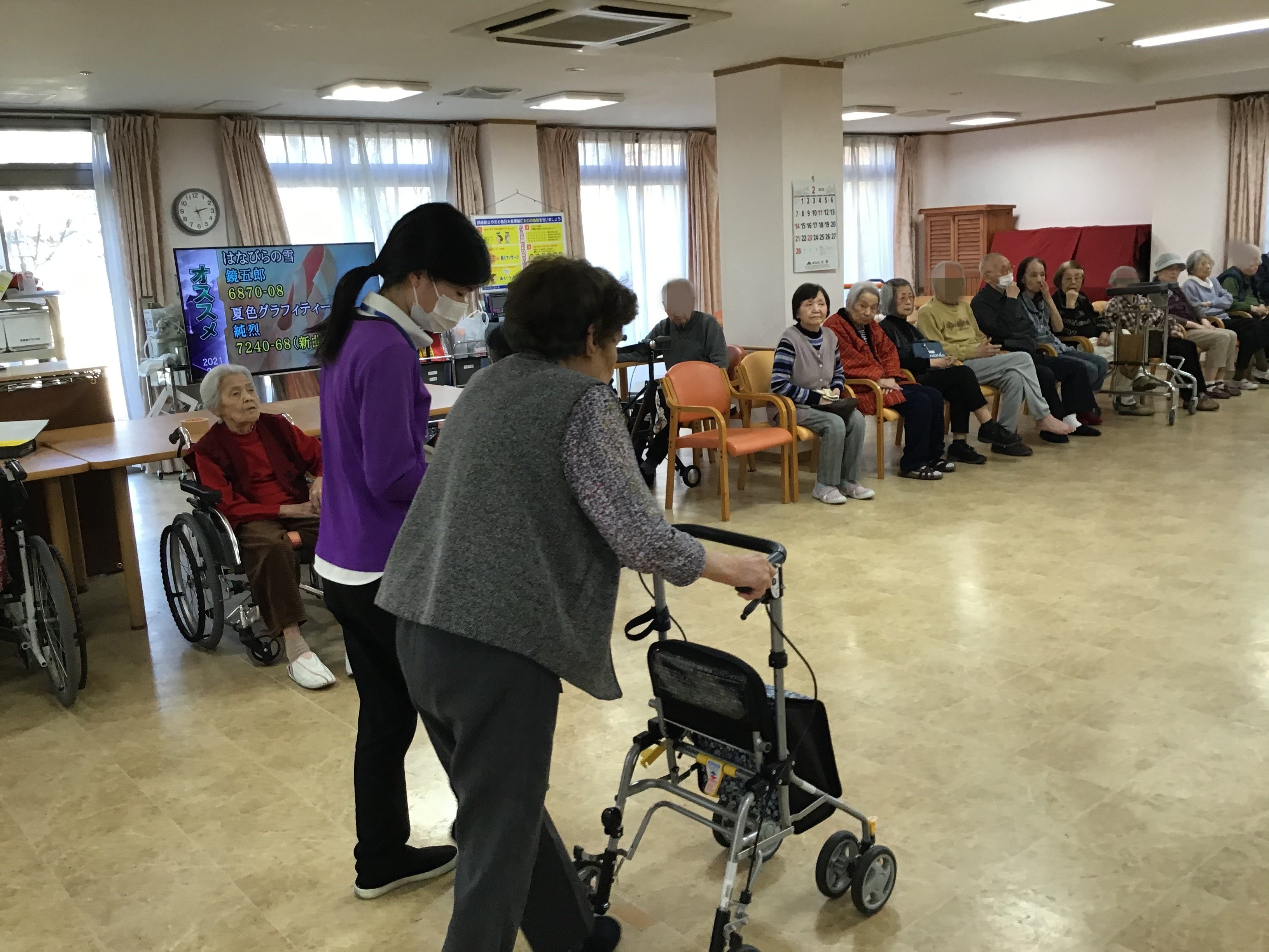 事務員、看護師、ヘルパーの方にご協力いただき無事ケガ無く終了しました♪