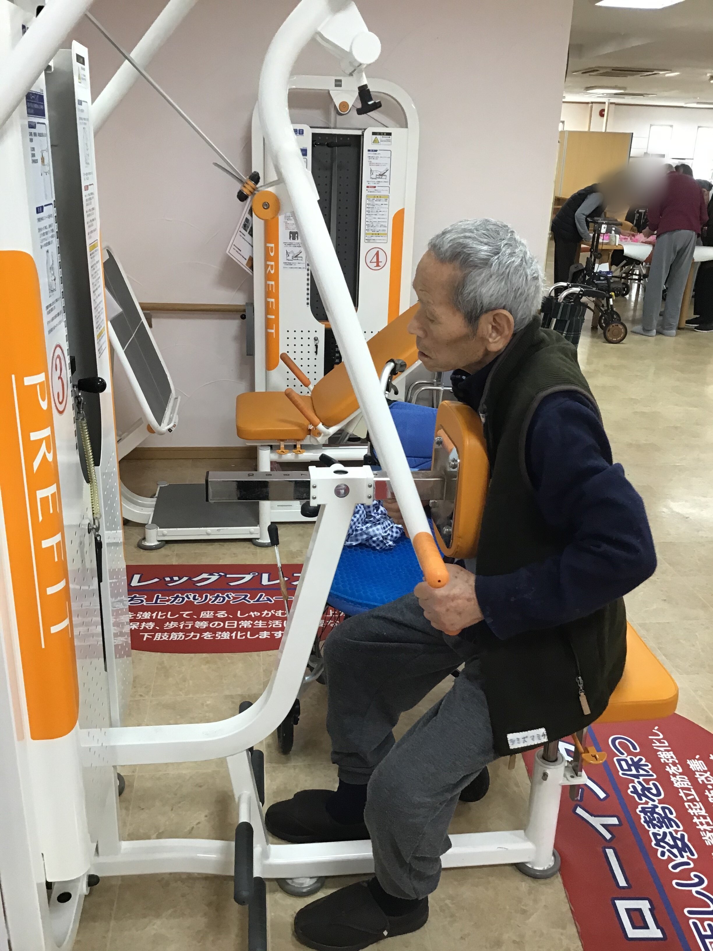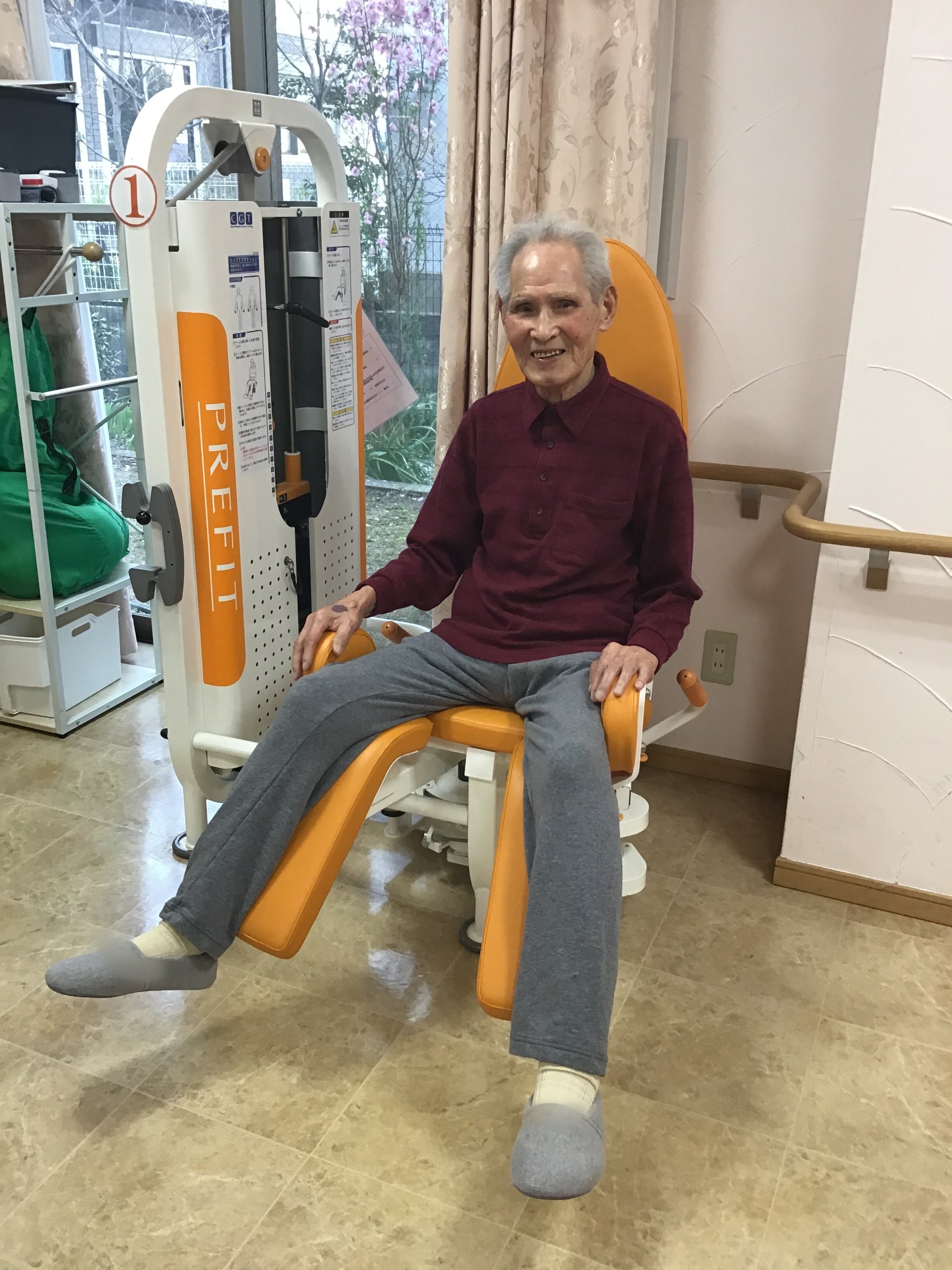 男性に多いのですが「もっと重たくしてほしい」と仰る方がいます。重ければいいわけではなく、現在の筋力や持病、バイタルなどいろいろなことを加味して負荷を決定していますのでご家族様にはご安心いただければと思います♪