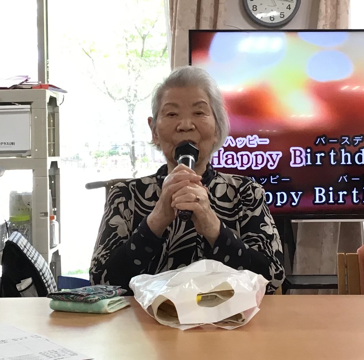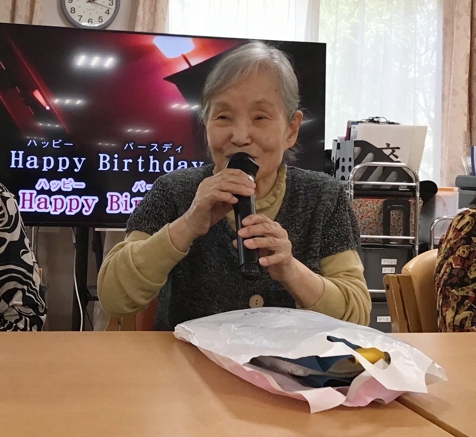 職員とご入居者の合唱でハッピーバースデーをプレゼント♡