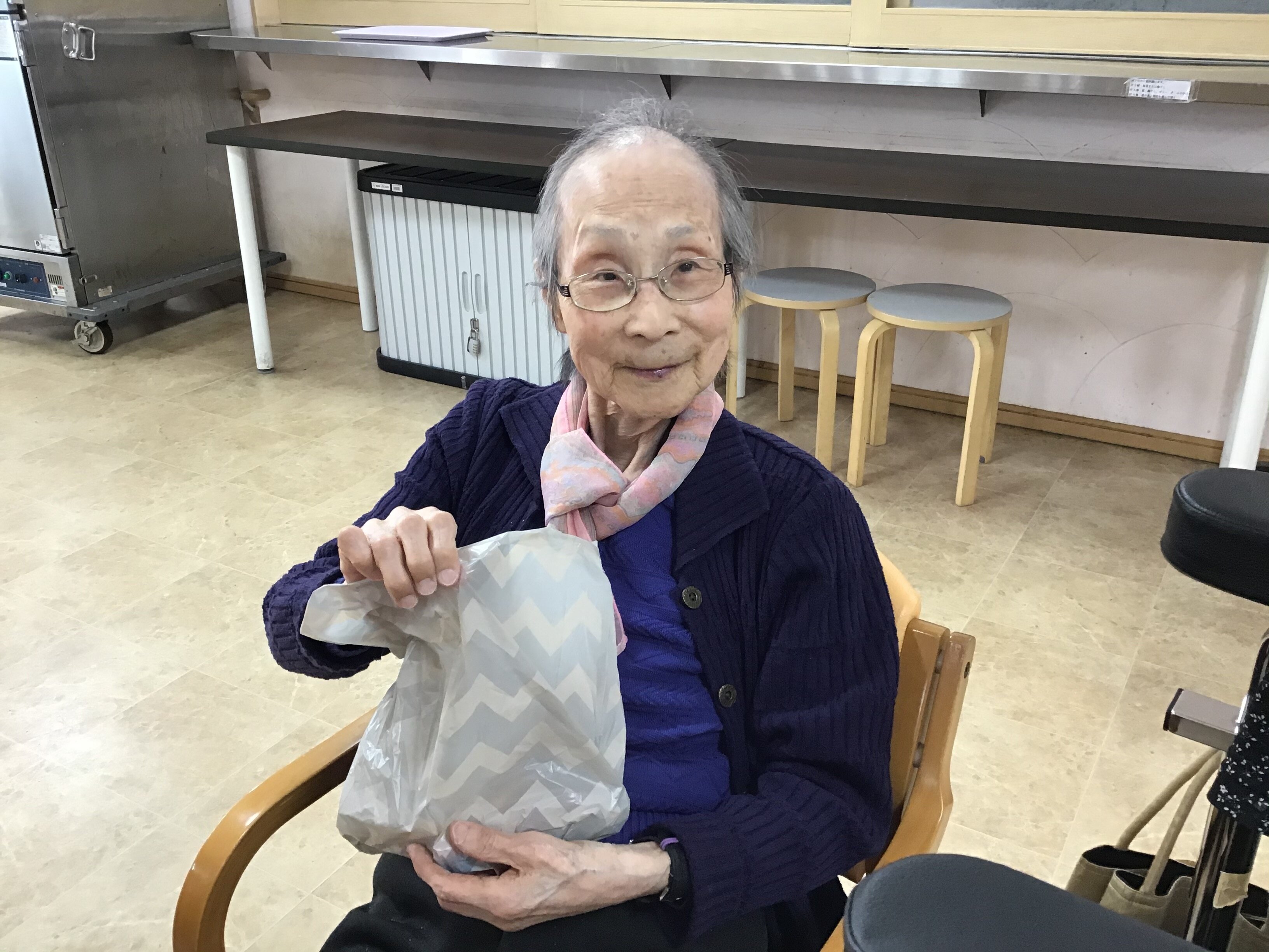 職員一同からのプレゼントに扇子が入っており、とても喜んでいただけました!
