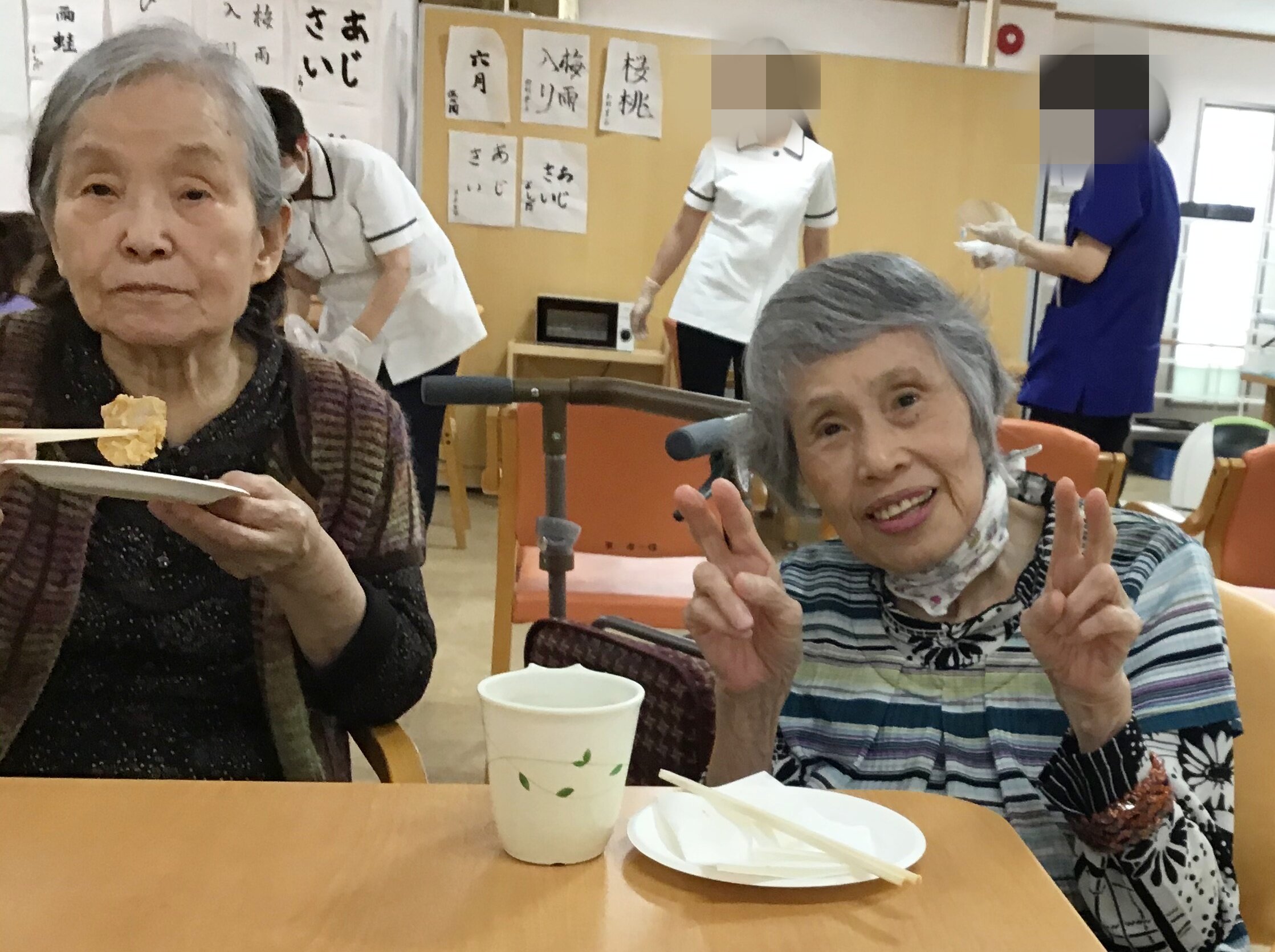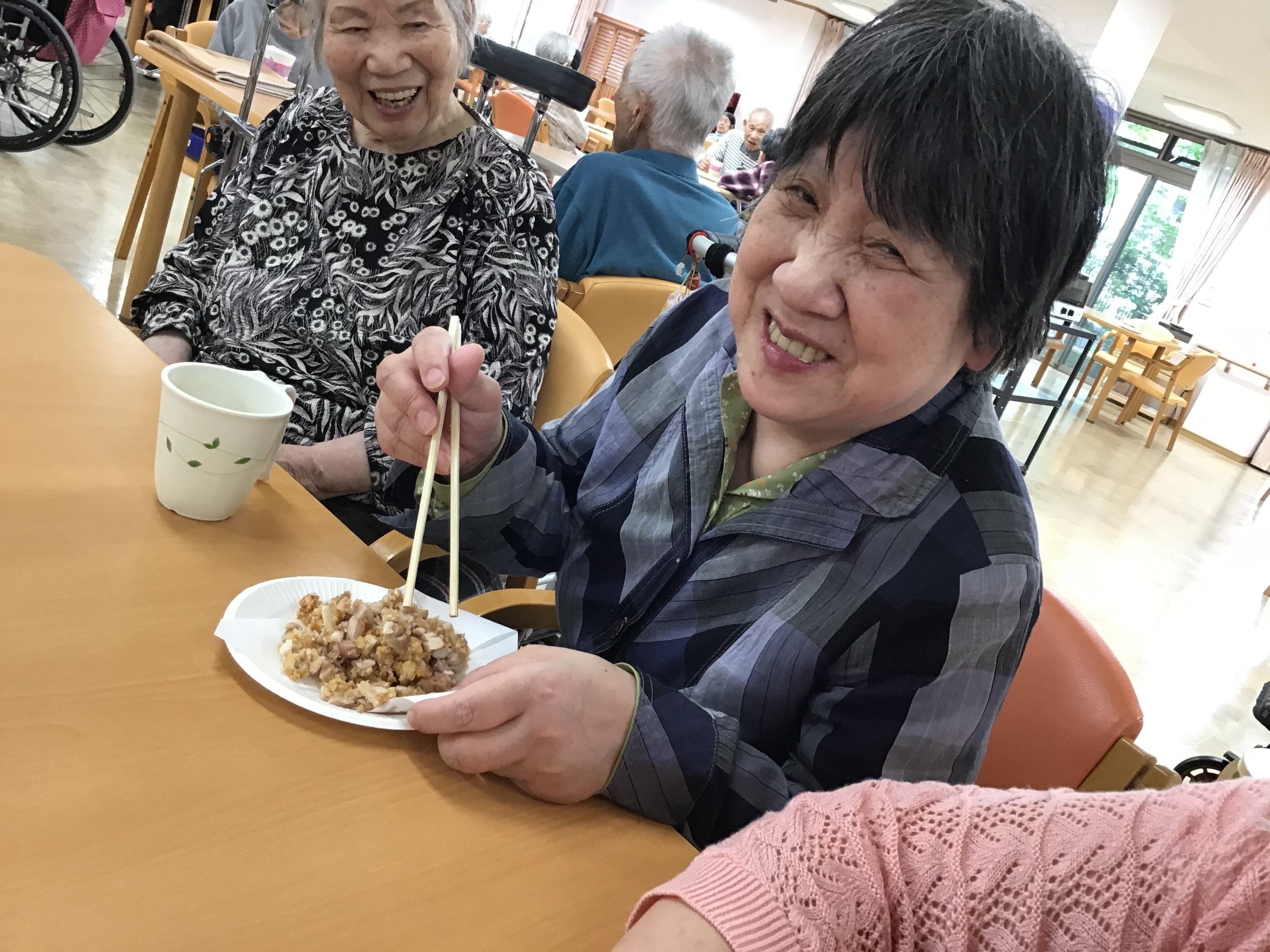 でも前向きな入居者様は「一日で二回も美味しい揚げ物食べれるなんて嬉しいよ!」と温かいお言葉をかけて下さりました♡