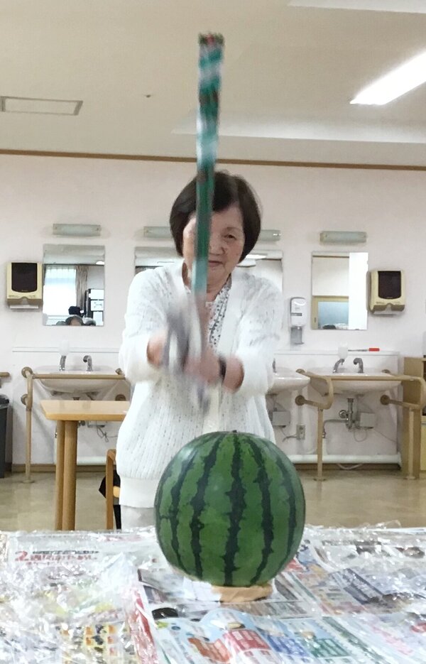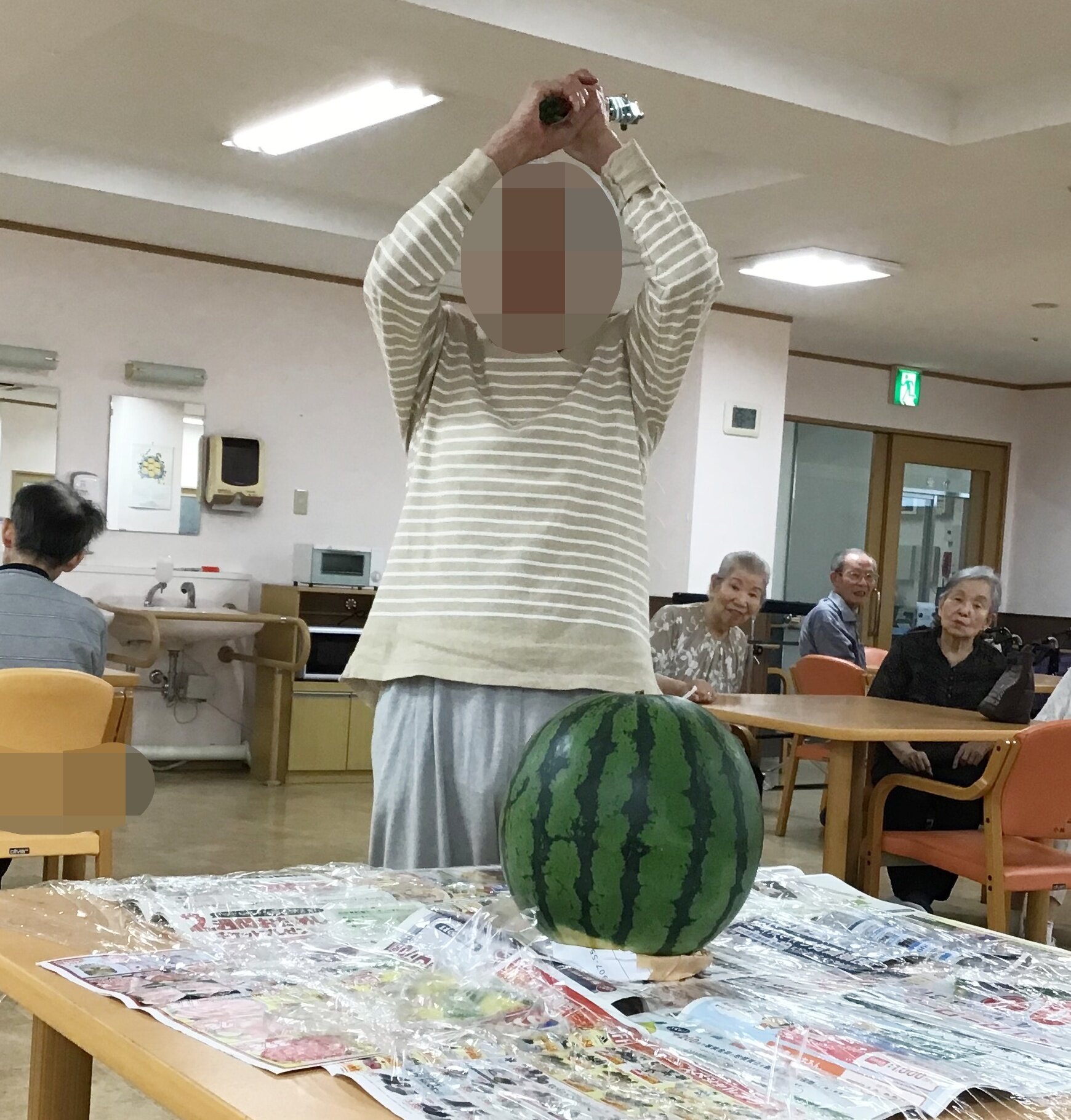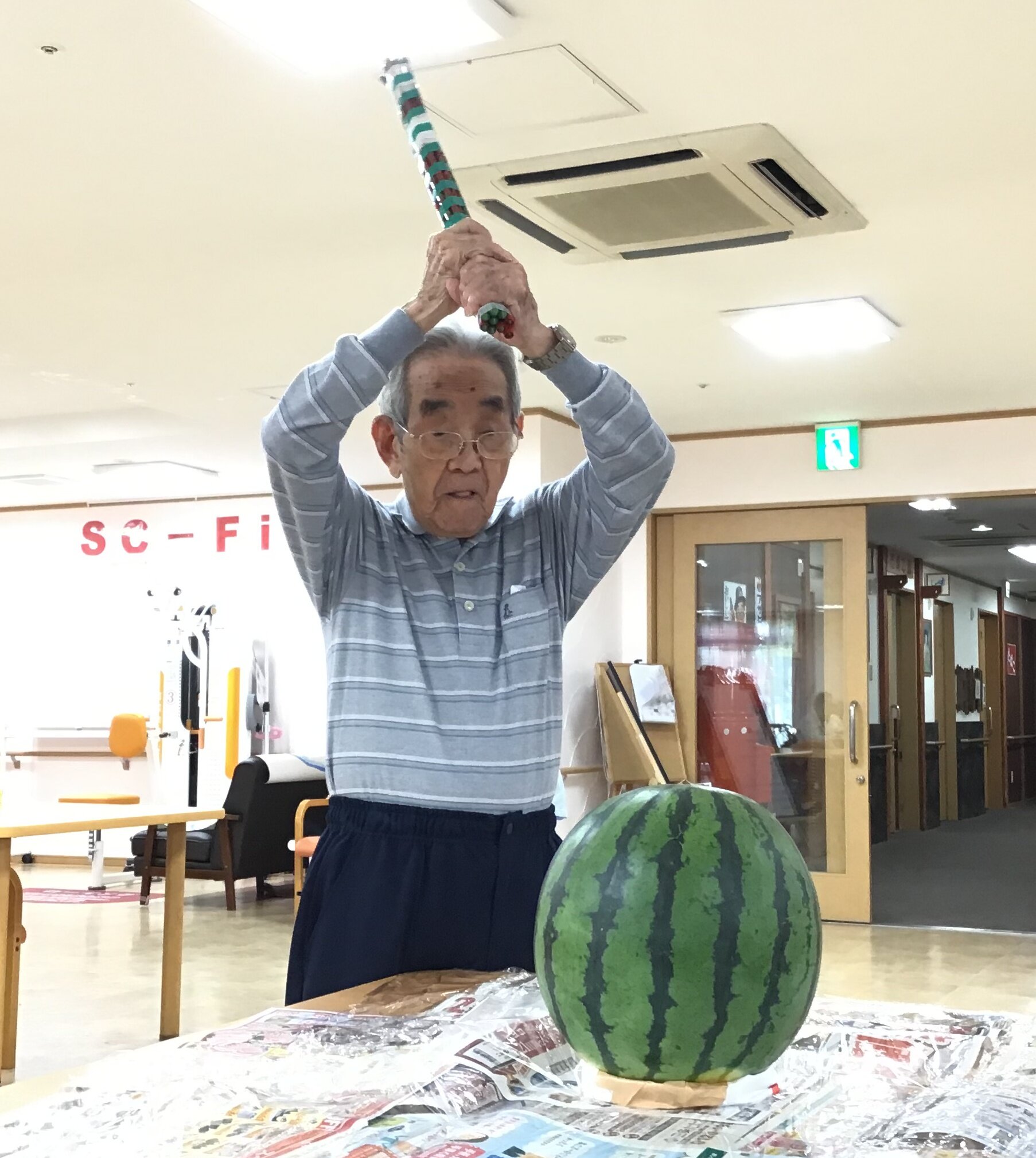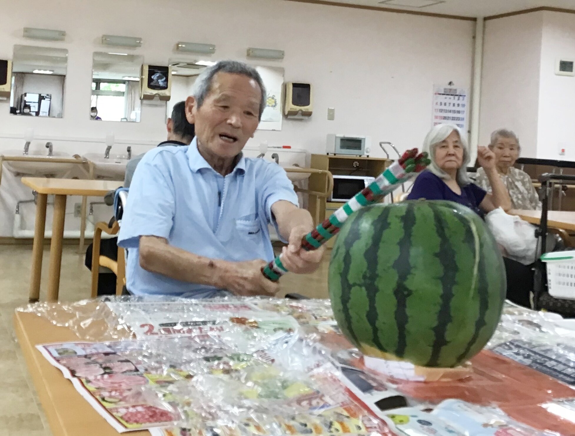 そんな中開催したすいか割り!水分が多い果物として有名です!